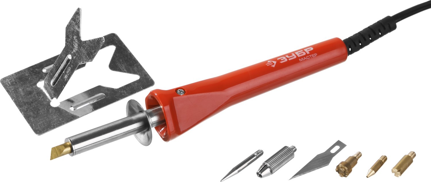 Прибор для выжигания, пайки, резки, с набором насадок 5шт Поставляется с ножом Быстрый нагрев до максимальной температуры 520°С Эргономичная термозащищенная пластиковая рукоятка Металлическая подставка для безопасной работы |