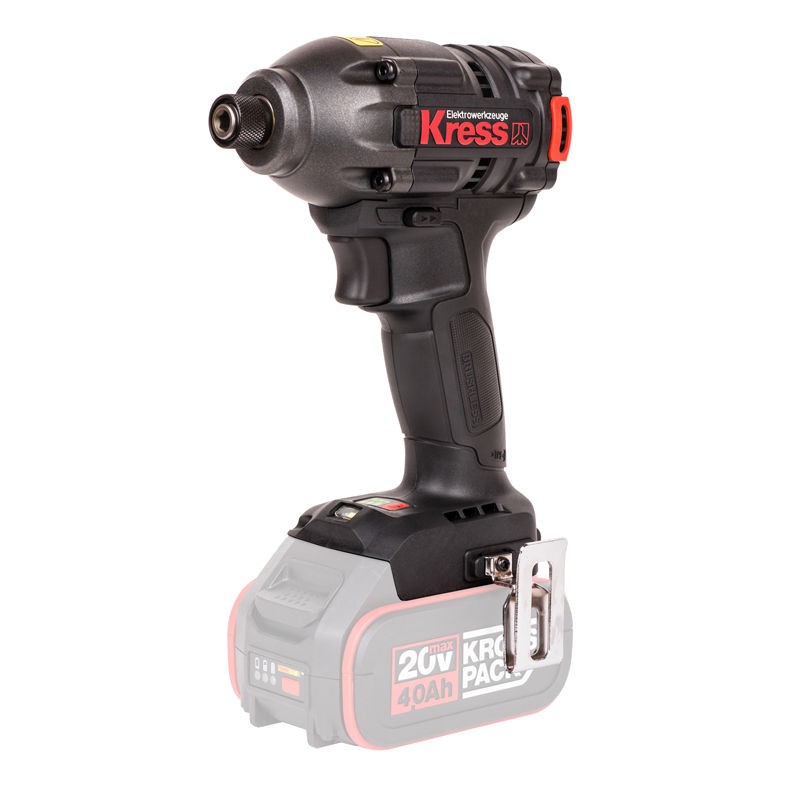 Бесщеточный двигатель Высокий крутящий момент 3 скоростных режима Компактные размеры и малый вес Импульсный режим вращения Патрон HEX 1/4 Универсальная аккумуляторная система Kress 20V Клипса для крепления на поясе Яркая светодиодная подсветка |