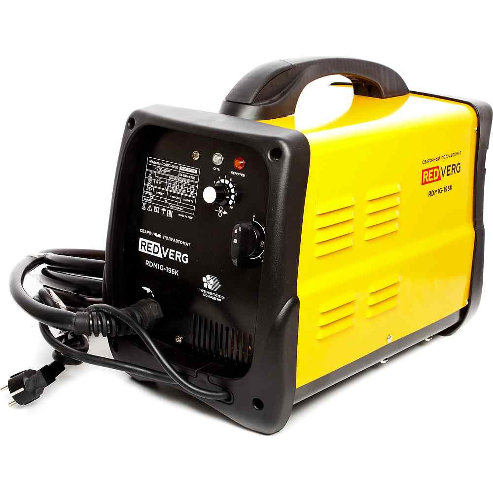 Аппарат сварочный инверторный REDVERG RDMIG-195K полуавтомат работает плавящейся электродной проволокой в среде защитного газа. Он станет превосходным помощником в ответственных делах. При помощи этого инструмента вы сможете идеально сварить швы и добиться поражающего воображение результата. Удобный в эксплуатации, сварочный полуавтомат REDVERG может использоваться в любом положении, даже около потолка. Вы не будете разочарованы этой техникой.