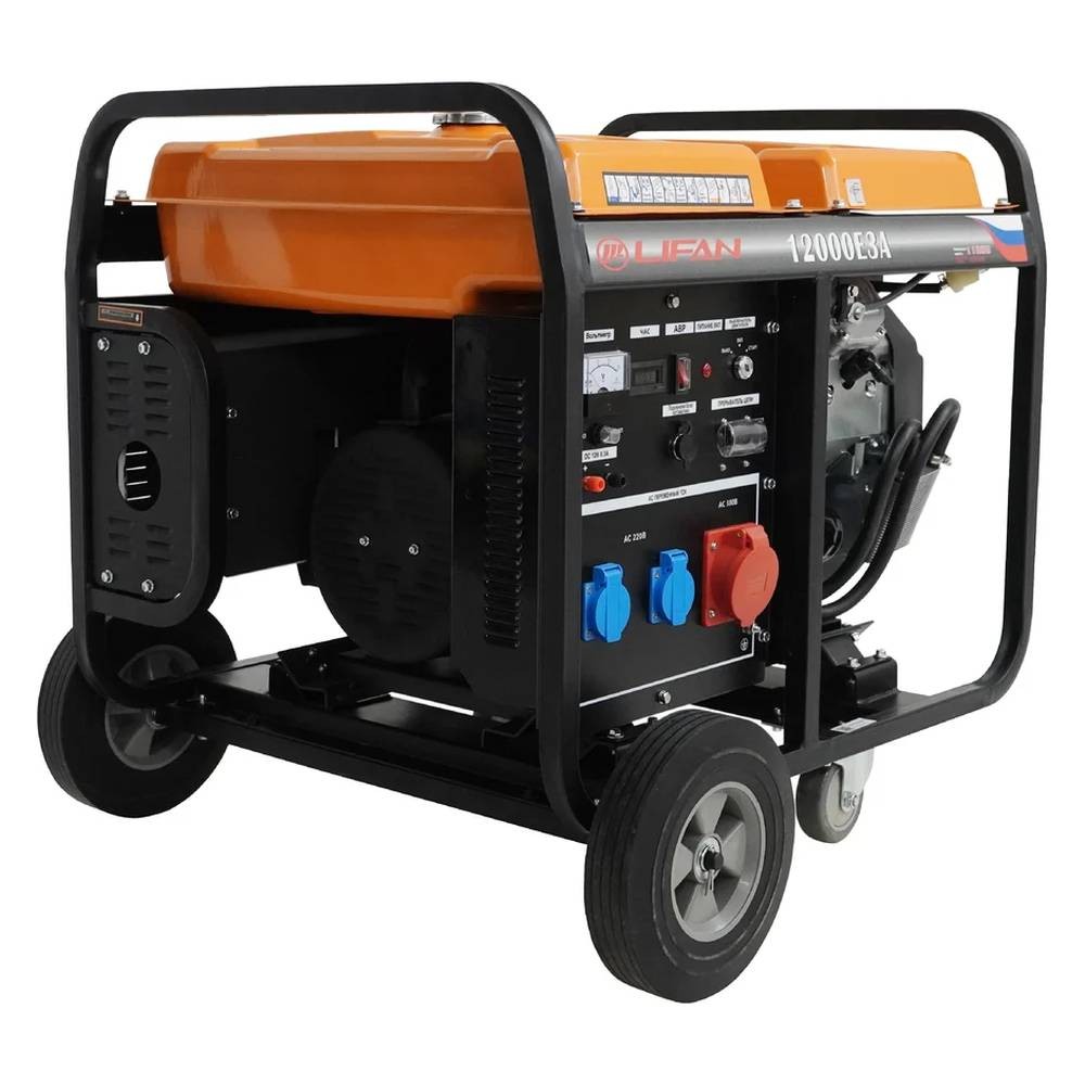 <div class="catalog-product-attributes__white-gradient"></div> <p class="product-page__description-paragraph"> Бензиновый генератор LIFAN 12000E3A - мощный трехфазный бензиновый генератор, применяемый в качестве источника электроэнергии на дорожных и строительных работах, промышленных объектах, на личных загородных участках, в автомастерских, магазинах и в других подобных областях. Исключительная надежность, устойчивость к поломкам и высочайшая производительность делают данную модель одной из лучших на рынке в своем классе электрогенераторов. Генератор обладает высокой мощностью в 12/10.5кВт, временем непрерывной работы около 4 часов, имеет выходное напряжение 220В и 380В. Оснащен электрическим стартером, вольтметром, индикатором уровня топлива, системой контроля уровня масла и автоматического отключения в случае снижения его уровня, а также системой защиты от перегрузок (AVR). Медная обмотка позволяет повысить КПД, уменьшить расход топлива, нагрев и износ агрегата, тем самым увеличивая срок его службы. Бл |