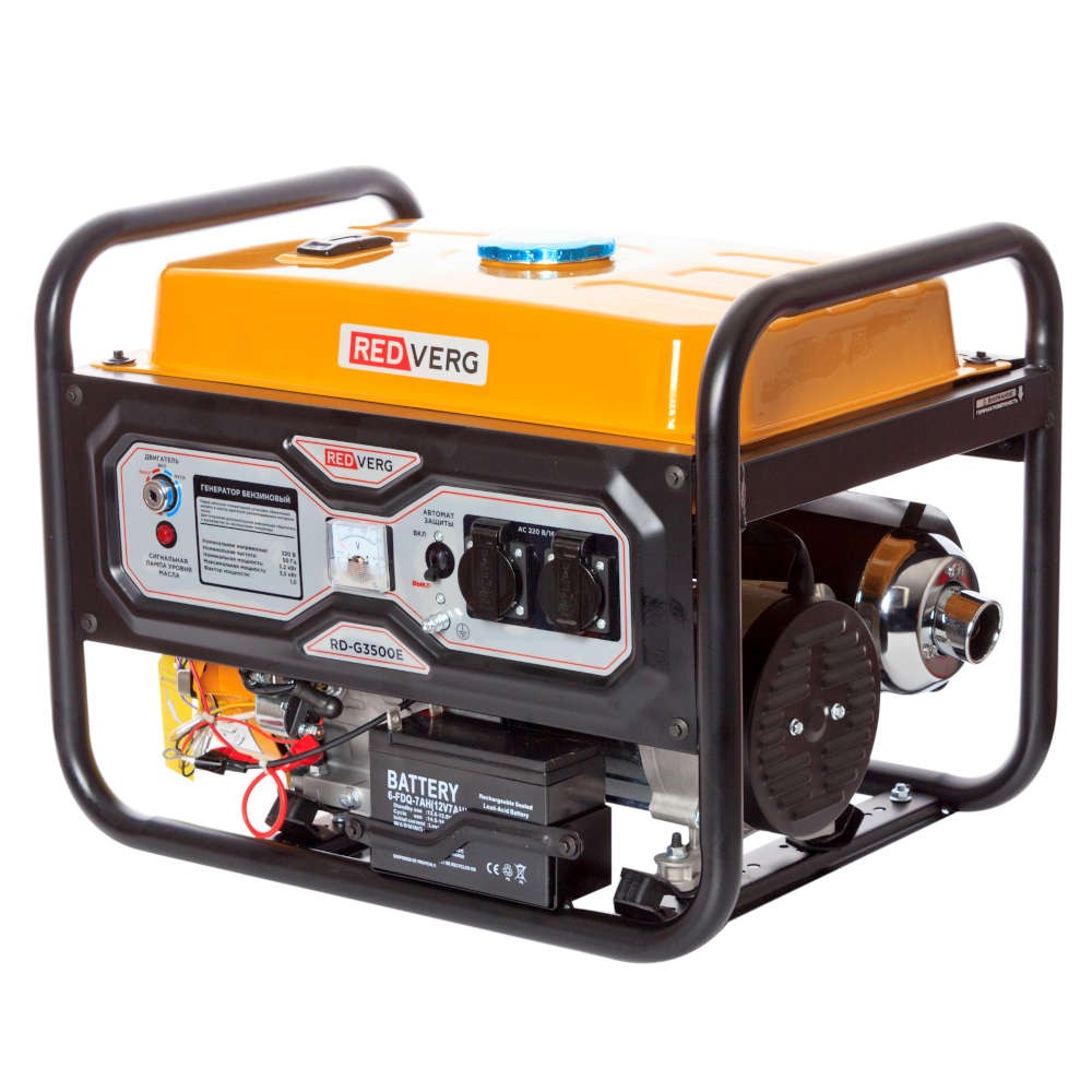 <div class="catalog-product-attributes__white-gradient"></div> <p class="product-page__description-paragraph"> Бензиновый генератор REDVERG RD-G3500E - универсальный и производительный агрегат, при перебоях с электричеством бензогенератор является надёжной альтернативой центральному электроснабжению. Используется для подключения осветительных приборов, отопительного оборудования, электроинструментов, бытовой техники. Оборудование оснащено четырёхтактным двигателем мощностью 8.5 л.с. Имеет электрический и ручной запуск. Особенностью данной модели является увеличенный топливный бак, с которым генератор способен проработать до 13 часов без дозаправки. Генератор отличается компактными размерами и небольшим весом, легко запускается при низкой температуре в холодное время года. </p> <br> <ul class="catalog-product__features-list ul-list"> <li class="catalog-product__features-item">Надёжный 4-х тактный бензиновый двигатель - развивает высокий крутящий момент и при этом имеет пониженный уровень шума и выхлопов |