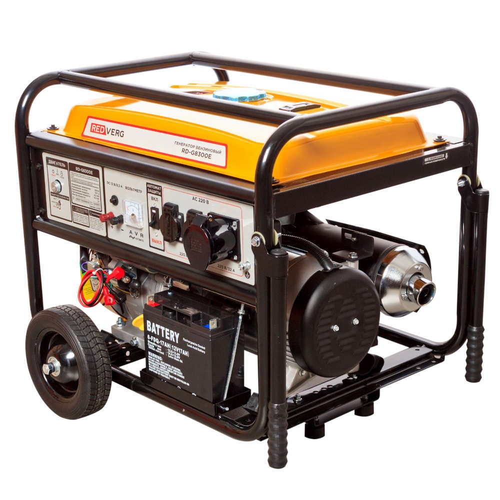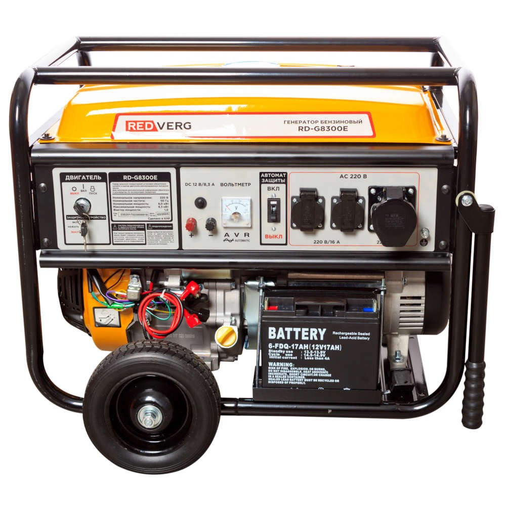 <div class="catalog-product-attributes__white-gradient"></div> <p class="product-page__description-paragraph"> Бензиновый генератор REDVERG RD-G8300Eоснащен современным 4-х тактным двигателем с низким расходом топлива. Генератор предазначен как источник подачи электроэнергии в случае ее отсутствия и кратковременного отключения.Модель оборудована системой электрозапуска предназначенной для легкого запуска даже в холодное время года.Комплектуется транспортировочными колесами и рукоятками.</p> <br> <ul class="catalog-product__features-list ul-list"> <li class="catalog-product__features-item">Надёжный 4-х тактный бензиновый двигатель - развивает высокий крутящий момент и при этом имеет пониженный уровень шума и выхлопов</li> <li class="catalog-product__features-item">Воздушное охлаждение - для продолжительной работы без перегрева</li> <li class="catalog-product__features-item">Большой топливный бак - для непрерывной работы без дозаправки</li> <li class="catalog-product__features-item">Индикатор уровня топл |