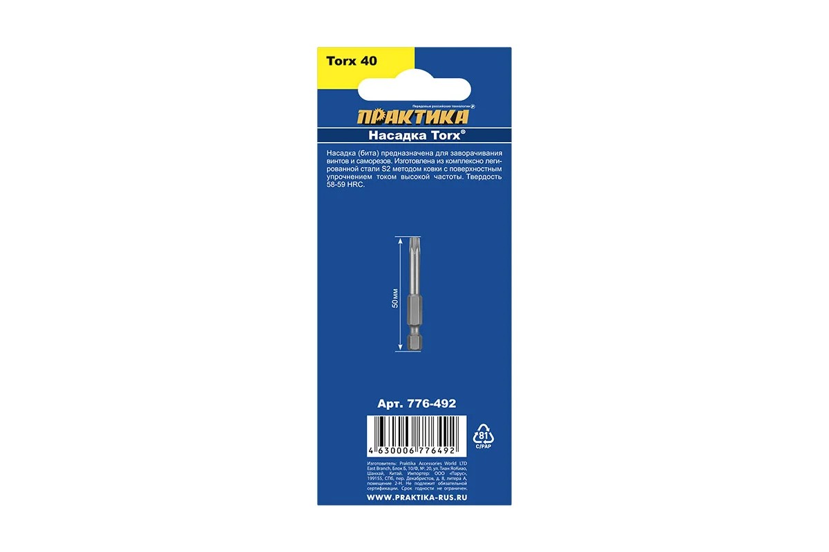 Бита Практика Torx Tamper "Профи" 40 х 50мм (2шт)