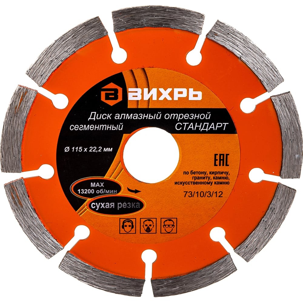 Диск алмазный отрезной сегментный СТАНДАРТ, 125 х 22,2 мм, сухая резка Вихрь