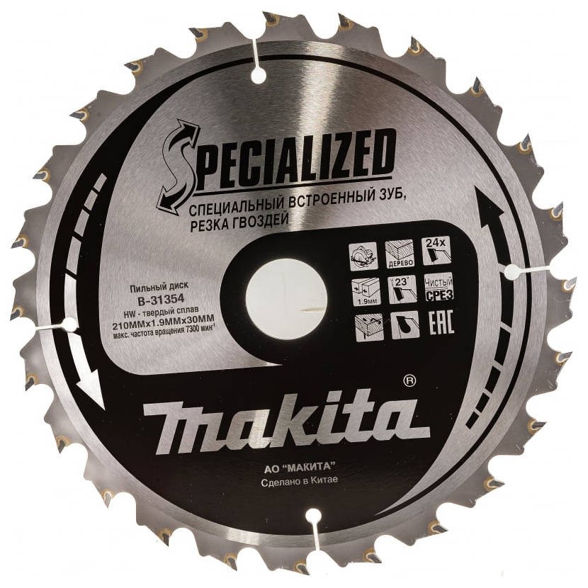 Диск пильный по дереву Makita 210x30мм 24T (B-31354)