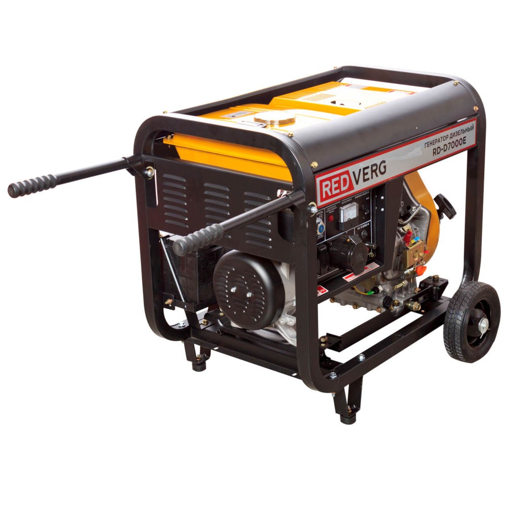 <div class="catalog-product-attributes__white-gradient"></div> <p class="product-page__description-paragraph"> Дизельный генератор REDVERG RD-D7000E имеет широкую сферу применения. Может использоваться в качестве аварийного источника бесперебойного питания (ИБП) в банках, охранных предприятиях и проектных организациях, а также при работах вне помещений, на инженерных сооружениях, или в качестве мобильного источника питания для армии. Она также может быть использована как резервный источник питания на коммерческих и военных судах, в животноводстве, земледелии и рыбном хозяйстве, в лесоводстве и садоводстве, в гостиницах и магазинах, на ремонтных предприятиях, а также в небольших мастерских. </p> <br> <ul class="catalog-product__features-list ul-list"> <li class="catalog-product__features-item">Дизельный двигатель - сочетает высокую мощность и крутящий момент с экономичностью и низким уровнем выхлопа.</li> <li class="catalog-product__features-item">Воздушное охлаждение - для продолжительной работы без пере