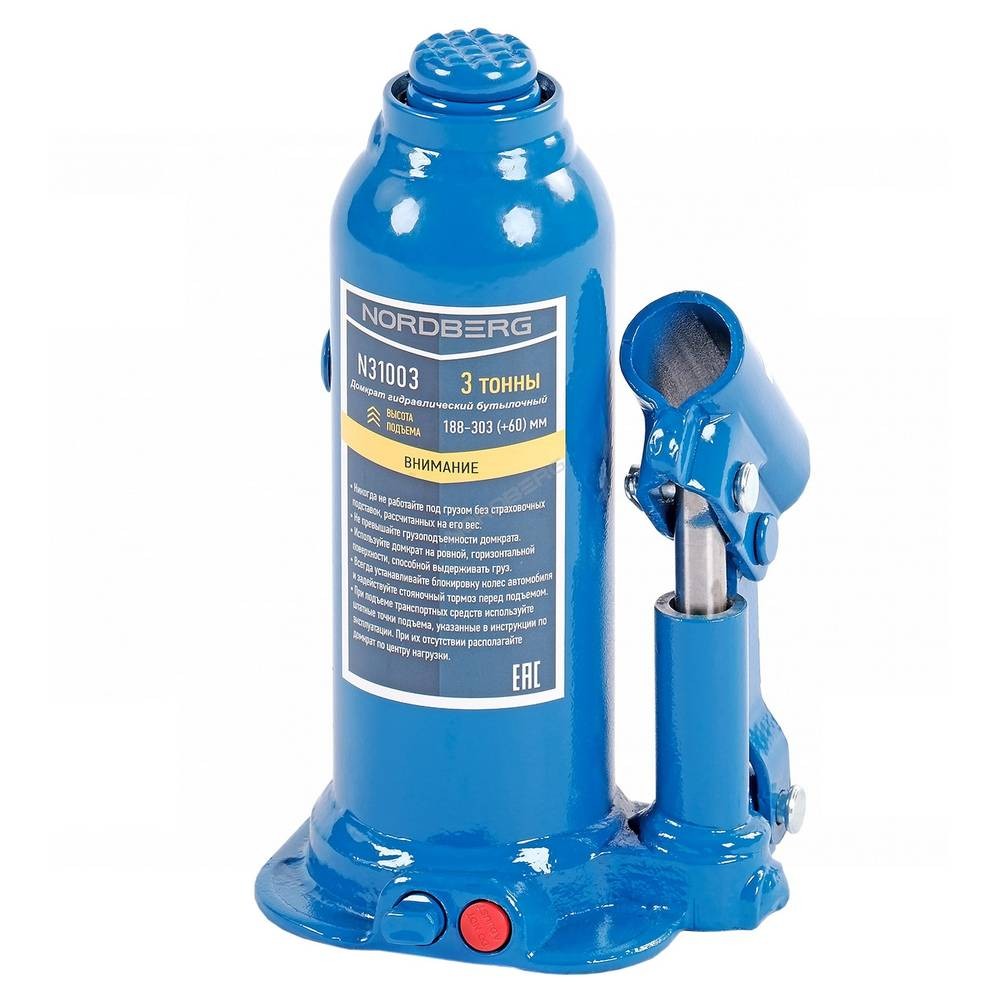 Бутылочный домкрат NORDBERG N31003 – высококачественное силовое оборудование для выполнения подъемных работ при диагностике и ремонте автомобиля в автосервисах, шиномонтажах и автотранспортных предприятиях.