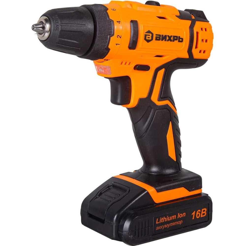 Дрель-шуруповерт аккумуляторная Вихрь ДА-16Л-2КА с набором оснастки 65 предметов