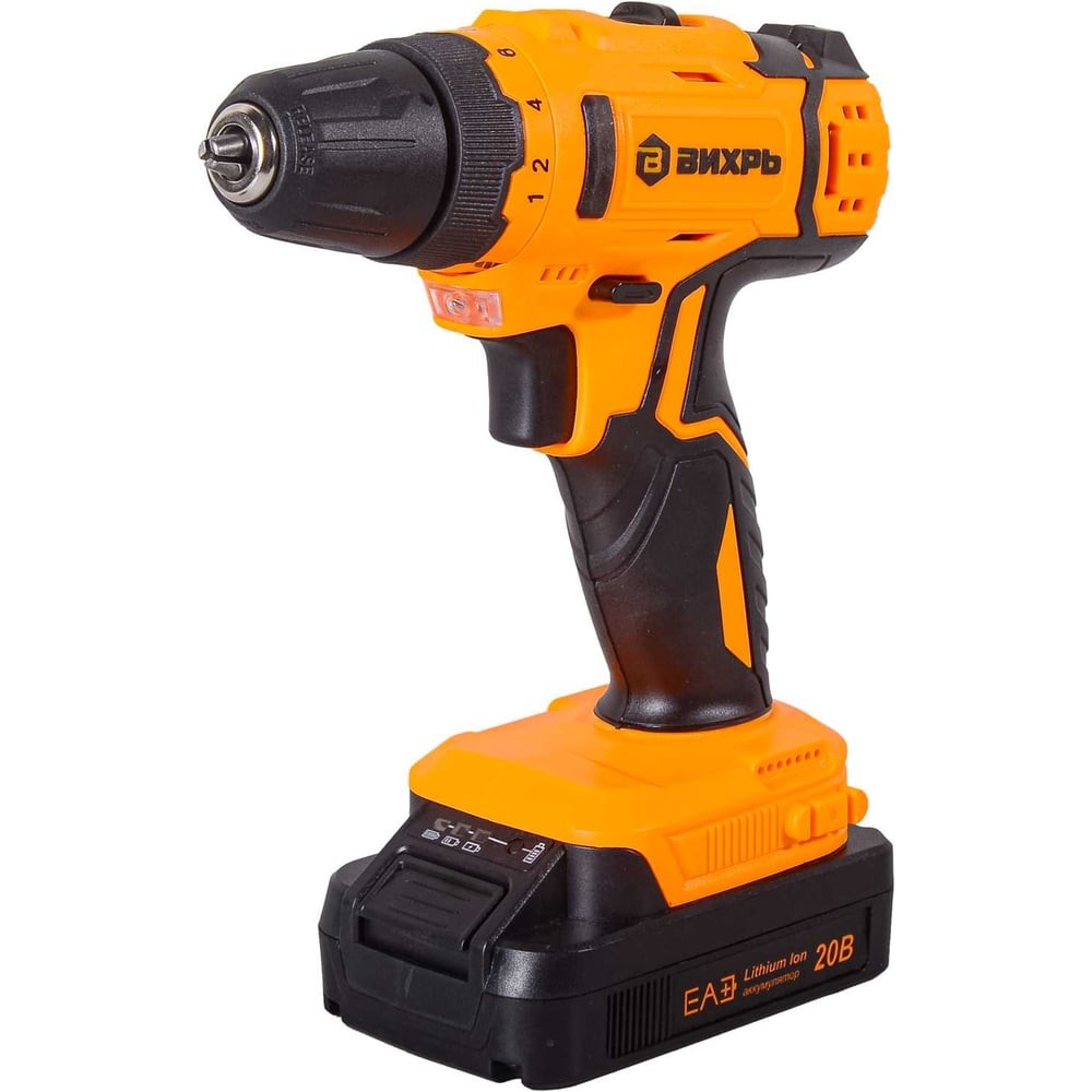 Дрель-шуруповерт аккумуляторная Вихрь ДА-20Л-2КА с набором оснастки 65 предметов