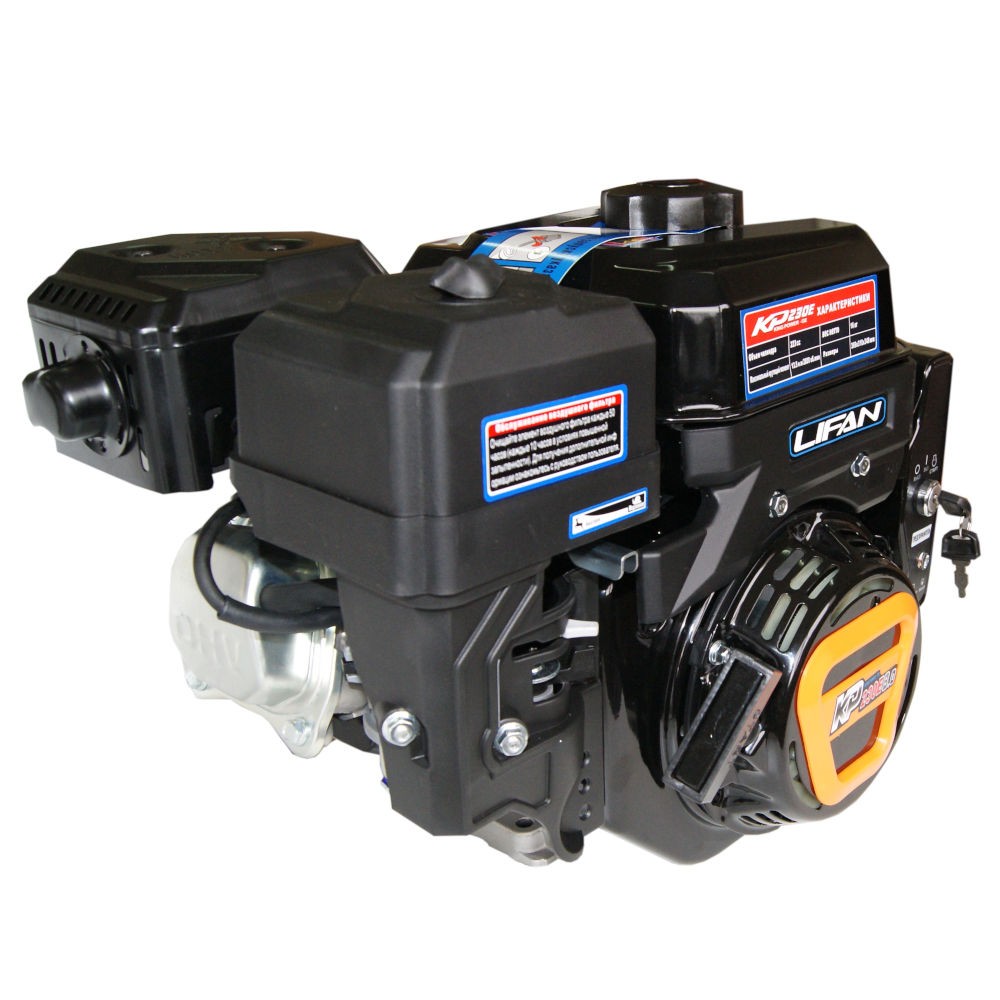 Двигатель бензиновый LIFAN KP230E (170F-2TD) 4-х тактный, одноцилиндровый, с воздушным охлаждением мощностью 8л.с.. Подходит для установки на культиваторы, мотоблоки, мотопомпы, мотобуксировщики. Использование самых современных материалов в конструкции оборудования уменьшает его вес и повышает производительность. Двигатель без труда можно транспортировать и хранить. Он не займет много места. Во время работы оборудование производит минимум шума и вредных выхлопов. Оснащен электростартером.