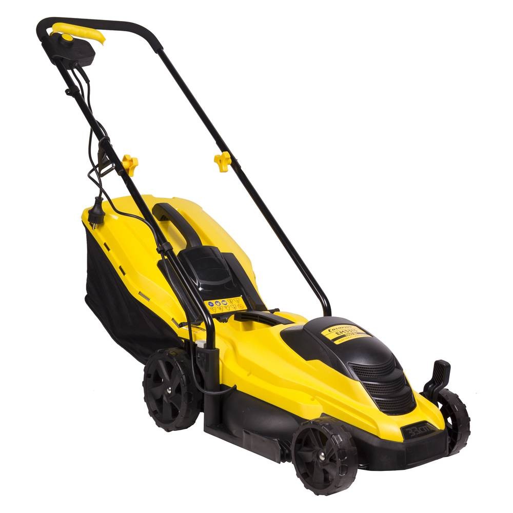 Электрическая газонокосилка Champion EM3313 с мощным двигателем 1300Вт прекрасно подходит для скашивания травы, подравнивания газонов, лужаек, для ухода за придомовыми участками. Ширина скашивания 330мм, высота скашивания варьируется от 25 до 65мм. Объём травосборника – 35 литров. Крышка травосборника оборудована ручкой для переноски. Кнопка блокировки запуска позволяет избежать случайного включения техники.