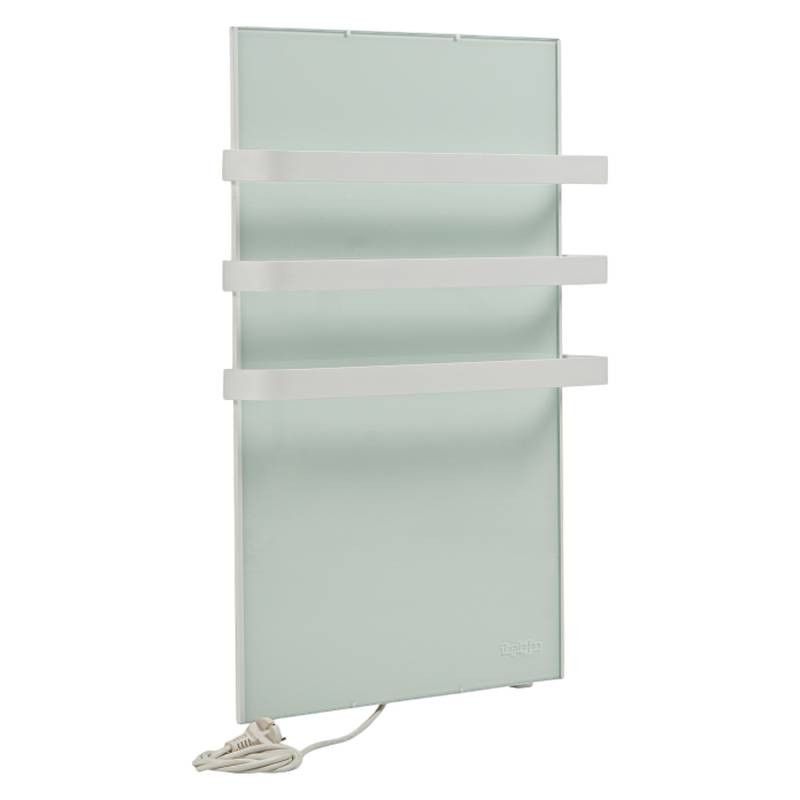 Уникальный, стильный, современный дизайн впишется в Ваш интерьер и станет незаменимой его частью. Корпус выполнен из нержавеющего металла, в который установлена греющая панель. Греющая панель – это противоударное закаленное стекло толщиной 4мм. На лицевой части размещены окрашенные полотенцедержатели из алюминиевой полосы. На корпусе полотенцесушителя установлена механическая кнопка для включения/выключения прибора и подключения к скрытой проводке.