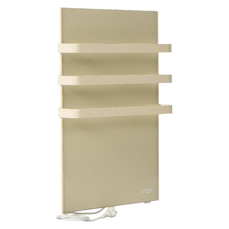 Уникальный, стильный, современный дизайн впишется в Ваш интерьер и станет незаменимой его частью. Корпус выполнен из нержавеющего металла, в который установлена греющая панель. Греющая панель – это противоударное закаленное стекло толщиной 4мм. На лицевой части размещены окрашенные полотенцедержатели из алюминиевой полосы. На корпусе полотенцесушителя установлена механическая кнопка для включения/выключения прибора и подключения к скрытой проводке.