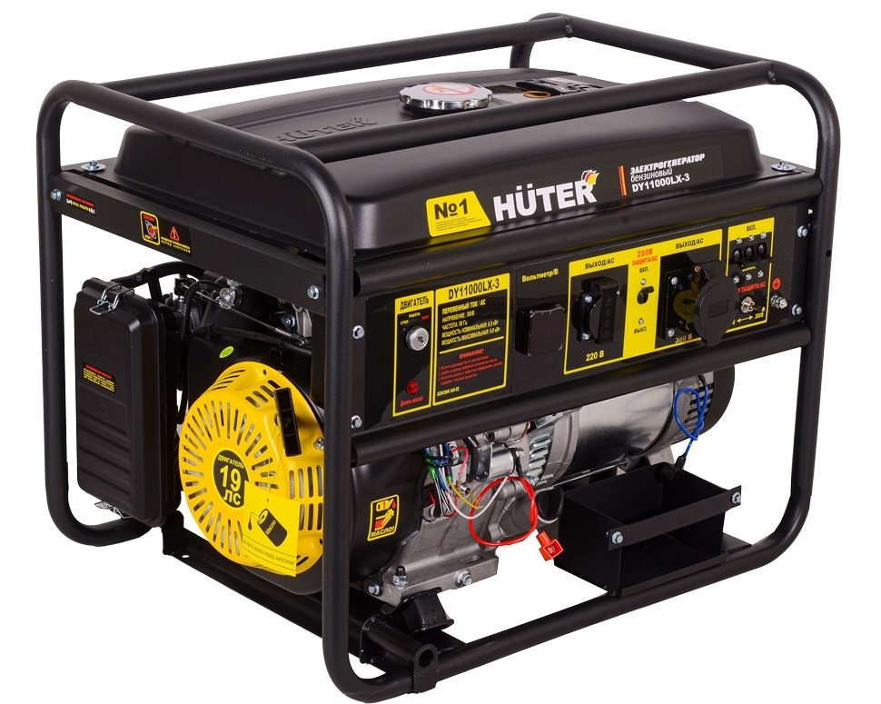 <div class="catalog-product-attributes__white-gradient"></div> Электрогенератор Huter DY11000LX-3 – портативная компактная электростанция, обеспечивающая электроснабжение бытовой техники и профессионального оборудования, питающегося от трёхфазной сети 380 Вольт. Это самый выгодный бензиновый электрогенератор, с оптимальными техническими характеристиками и низким расходом топлива. <br> Модель DY11000LX-3 может использоваться в качестве резервного источника питания для частных домов и квартир, а также как постоянная станция, обеспечивающая работу электроприборов в полевых условиях. Генерирующая установка имеет синхронный тип устройства и щёточный механизм. <br> Бензиновая электростанция Huter DY11000LX-3 оборудована мощным одноцилиндровым четырёхтактным двигателем внутреннего сгорания, мощностью 19 л.с. Запуск производится ручным стартером или электростартером от АКБ (аккумулятор не входит в комплектацию и приобретается отдельно). Для удобства транспортировки, отдельно можно приобрести колёса и ручки. Элект |