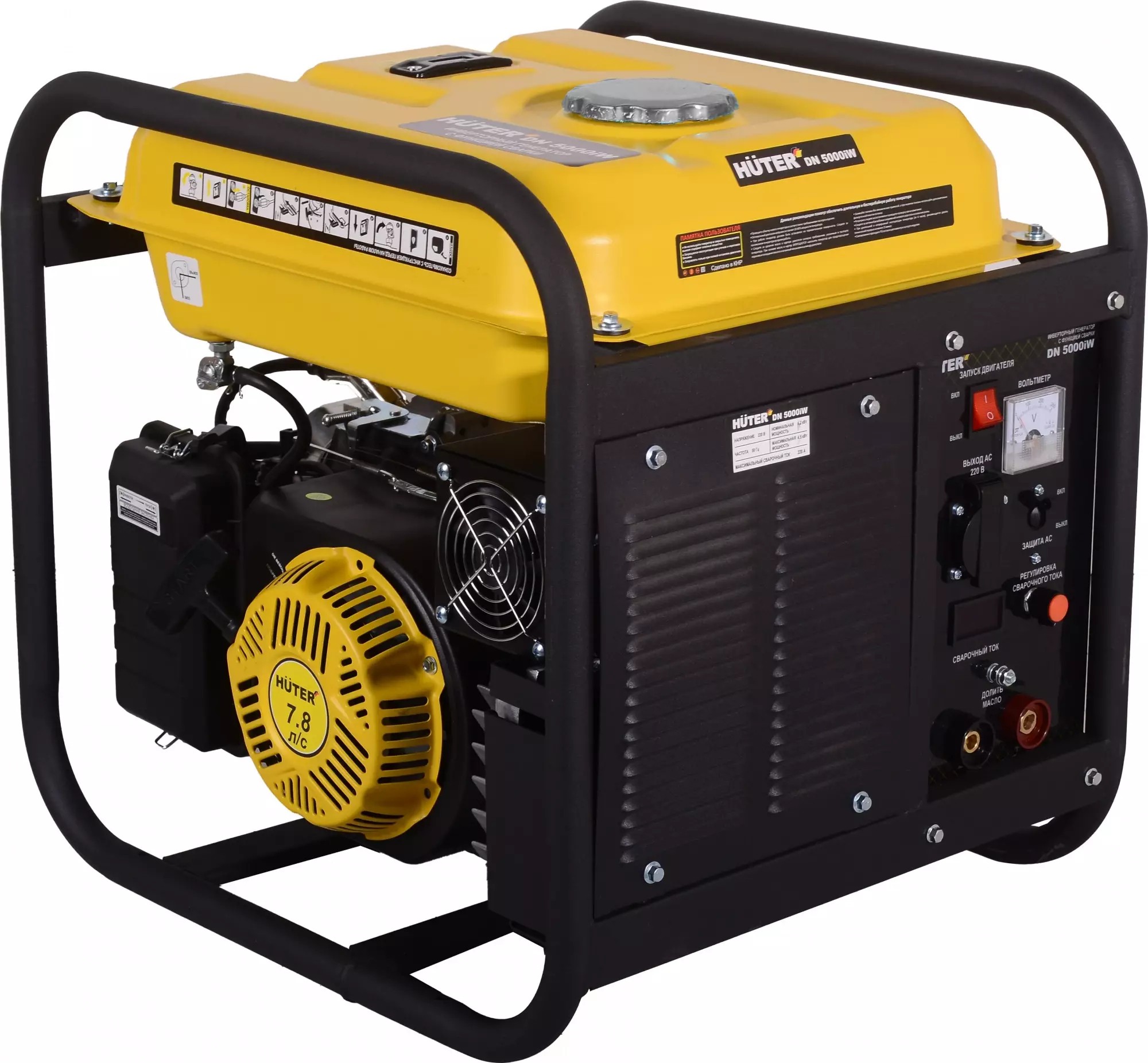 <div class="catalog-product-attributes__white-gradient"></div> Инверторный бензиновый сварочный генератор Huter DN 5000iW подходит для подключения электрических приборов с постоянным энергопотреблением, без высоких пусковых токов. Генератор может обеспечить электроэнергией потребителей суммарной мощностью до 4200 Вт. Бензогенератор Хутер выдает точную синусоиду с напряжением 220 Вольт. Разбор электроэнергии производится через штатную розетку 220 Вольт / 16 А. Идеально подходит для подключения автоматики котлов отопления, точных электроприборов, компьютера, источников освещения. Инверторный генератор Huter DN 5000iW оснащен функцией сварки. Для подключения сварочных проводов установлен клеммник. Сила тока сварочного модуля регулируется в пределах 30 - 220А.<br> Основные преимущества генератора Huter DN 5000iW:<br> - Инверторная технология - минимальные искажения напряжения и частоты, подходит для чувствительной электроники<br> - Высокая мощность - номинальная мощность 4200 Вт для подключения бытовых приборо |