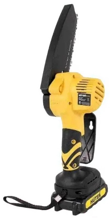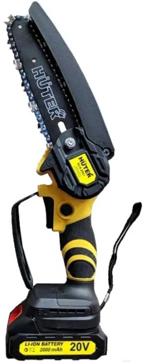 Аккумуляторная цепная пила удобно лежит в руке благодаря прорезиненной рукоятке. Для безопасности оператора предусмотрены защита от случайного пуска и защитный кожух цепи. В модели Huter ELS-2/6Li длина шины составляет 150 мм под цепь из 36 звеньев с шагом _. Ее необходимо смазывать каждые 10 - 15 пропилов, т.к. в инструменте отсутствует автоматическая смазка цепи.