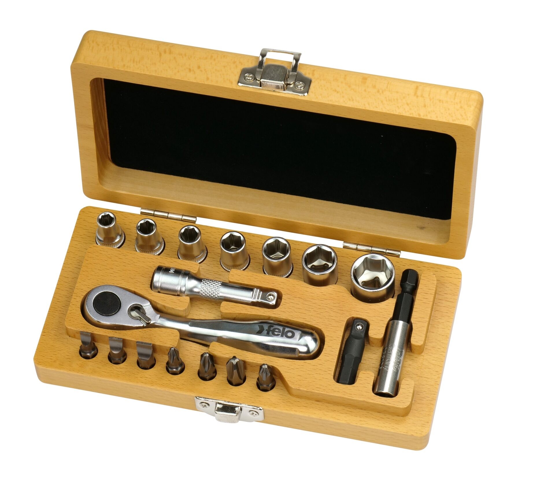 Felo Набор головок и бит с трещоткой и держателем бит в деревянном кейсе, 18 шт 05771866