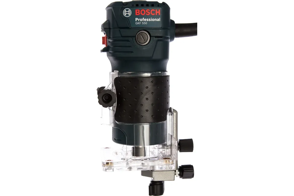 Фрезер Bosch GKF 550 выполняет работы по снятию фаски, созданию пазов, изготовлению канавок и вырезанию выемок. Оснащен двигателем на 550Вт и подходит для использования одной рукой. Благодаря мощному двигателю, скорость вращения шпинделя кромочного фрезера Bosch на холостом ходу составляет 33000 об/мин. Этого достаточно, чтобы обрабатывать даже прочные породы дерева. Управление состоит из одного тумблера выключения, что упрощает использование инструментом. Гнездо для установки фрезы закрыто пластиковым кожухом. Максимальный диаметр цанги составляет 6 мм. Угольные щетки закрыты поворотным пластиковым колпачком. Благодаря этому обслуживание упрощается, и вы можете выполнять его на месте, не обращаясь в сервис. Прорезиненные вставки обеспечивают надежный хват и предотвращают выскальзывание устройства. Компактная конструкция и вес 1,4кг делают процесс фрезерования удобным и быстрым.
