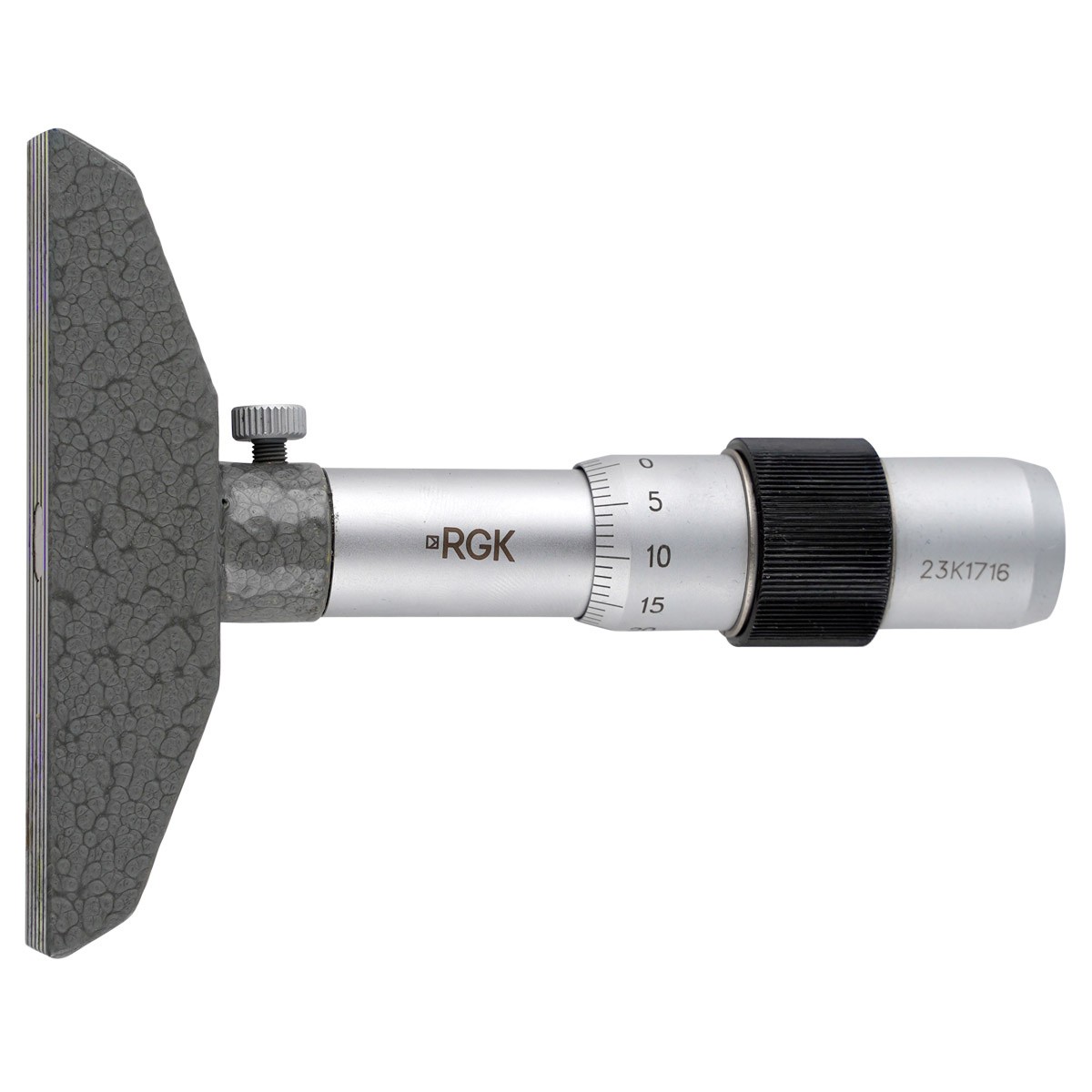 <div class="catalog-product-attributes__white-gradient"></div> Глубиномер микрометрический RGK GM-100 отличается от других моделей серии GM наиболее широким диапазоном измерений – от 0 до 100 мм. В комплект включены сменные измерительные стержни с плоской контактной поверхностью диаметром 8 мм, с рабочей длиной 25, 50, 75 и 100 мм соответственно. Основание с шлифованной прямоугольной опорной плоскостью длиной 85 мм снабжено выемками с боковых сторон, за счет чего уменьшен общий вес изделия без ухудшения прочностных и точностных характеристик. Особенности и преимущества глубинометра RGK GM-100 Высокоточное винтовое крепление стержней калиброванной длины исключает необходимость дополнительного выполнения перенастроек измерителя с использованием специальных установочных мер, как у изделий с пружинной фиксацией сменных элементов. Механизм ограничения усилия блокирует выдвижение измерительного стержня после соприкосновения его измерительной плоскости с поверхностью объекта контроля за счет одностороннего проскальз |