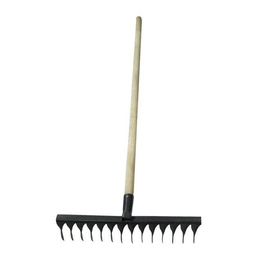 Грабли садовые витые (002763) - используются для выравнивания грунта, а также очистки садовых участков от различного мусора, скошенной травы и опавших листьев. Широкие зубья надежно удерживают собранный мусор, позволяя убрать территорию за один проход. Крепление полотна к черенку одним оцинкованным саморезом. Толщина зуба (S=2mm), материал - сталь 3, тип зубьев - витые. Материал черенка - береза первый сорт. Обработка черенка - полировка. Диаметр черенка - 30мм
