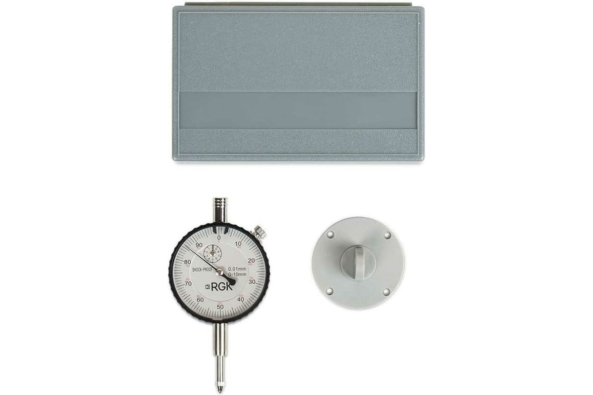 С индикатором часового типа RGK CH-10 удобно работать благодаря крупным цифрам, по которым можно комфортно считывать результаты измерений, не напрягая зрение. Предусмотрен дополнительный циферблат, который отображает количество полных оборотов основной стрелки. Наконечник измерительного стержня, как и другие элементы инструмента, выполнен из высококачественной стали, отличается износостойкостью и долговечностью.