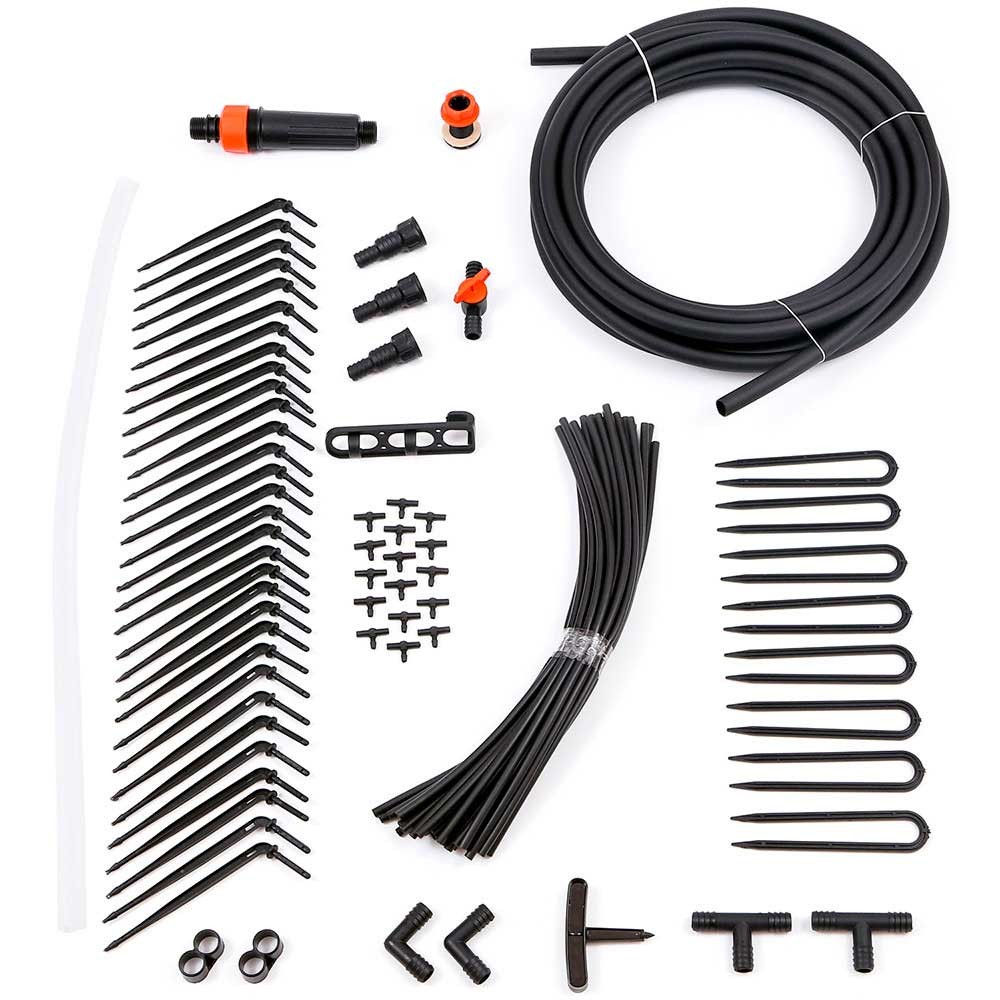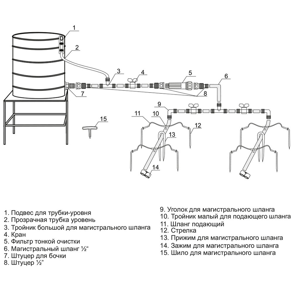 В комплект для капельного полива ТМ Жук входит штуцер присоединения к ёмкости, которого у других производителей нет. Все шланги в комплекте выполнены из чёрного полиэтилена, что предотвращает зацветание воды в полостях шлангов Капельницы в капельном поливе Жук имеют синусоидальную форму, что исключает засор её канала. Для монтажа подающих шлангов к магистральному, в комплекте предусмотрено шило. Тройники большие, уголки в комплекте используются для предотвращения заломов магистрального шланга при поворотах на 90 градусов. Заглушки и краны, дают возможность устанавливать капельный полив сразу на несколько грядок от одной ёмкости, регулируя полив (одна грядка поливаться, другая отключена). |