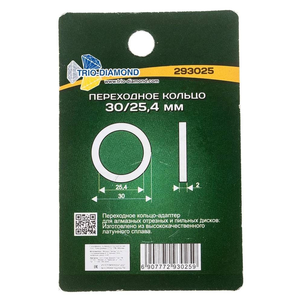 Кольцо переходное Trio-Diamond 30/25.4 (293025) позволяет устанавливать диски с посадочными отверстиями 30мм на УШМ, где необходим диаметр установки 25.4мм.