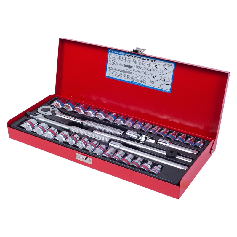Комплект головок торцевых 12гр. 6-22ММ, 1/4"-13/16" 36 предметов 3/8" KING TONY