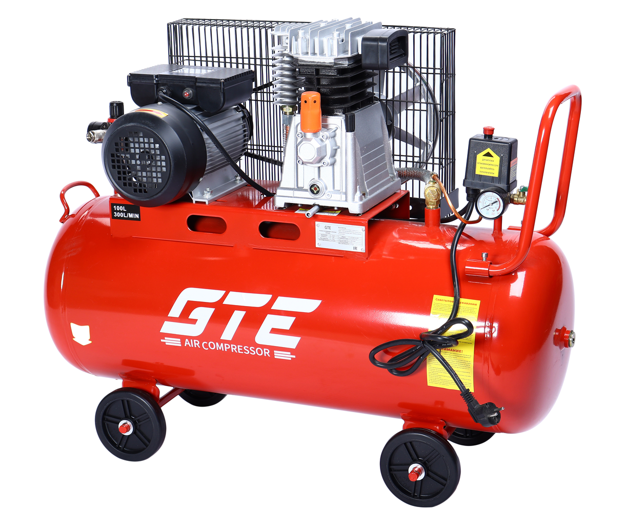 Компрессор пневматический 220В 3.0кВт 8атм. 300л/мин. ресивер-100л ременной одноступенчатый GTE