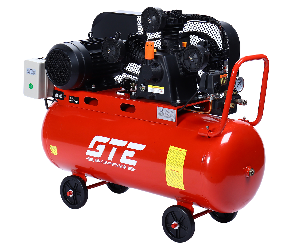 Компрессор пневматический 380В 3.0кВт 8атм. 400л/мин. ресивер-100л ременной GTE