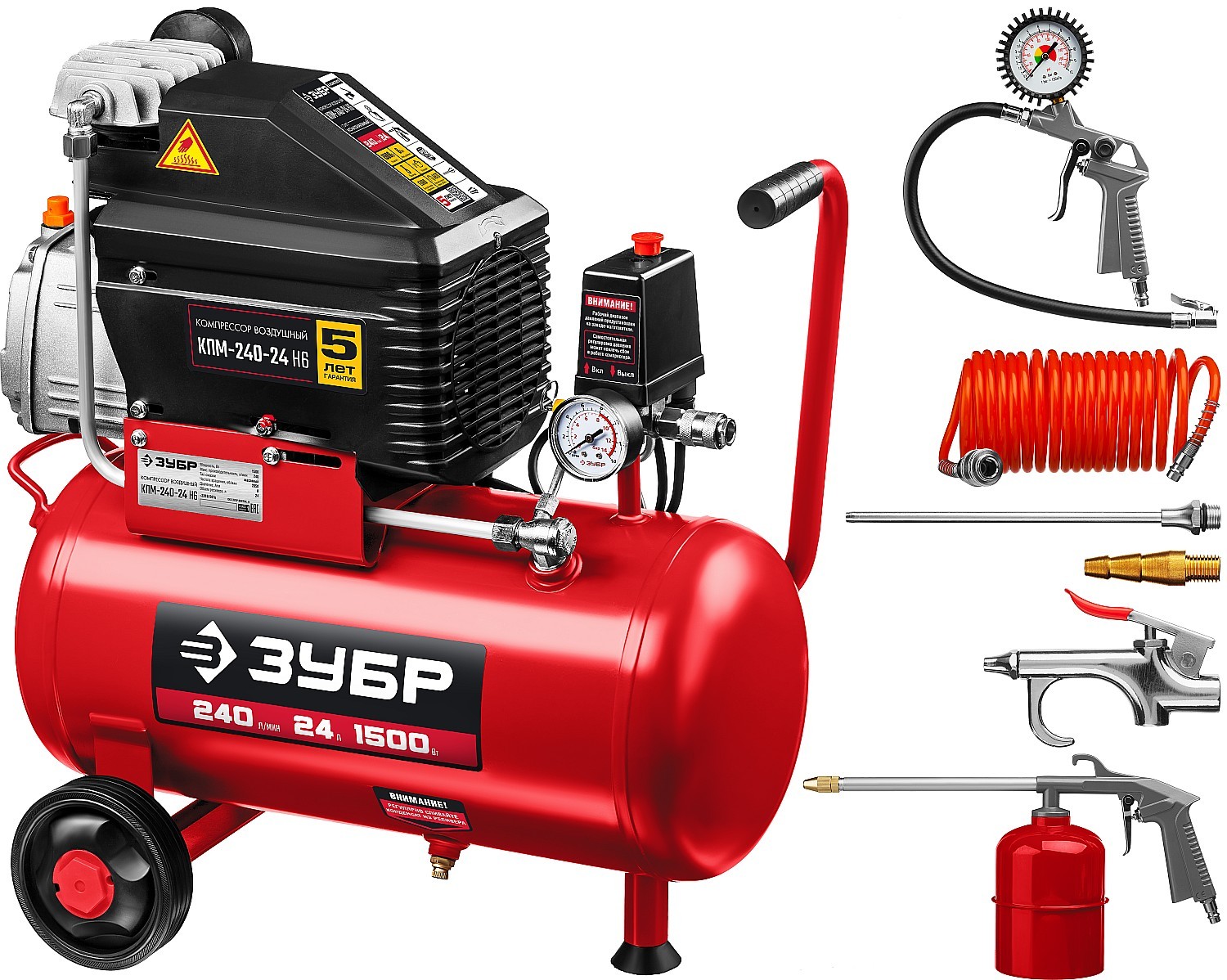 <div class="catalog-product-attributes__white-gradient"></div> Масляный воздушный компрессор ЗУБР КПМ-240-24 Н6 (240 л/мин, 24 л, 1500 Вт) с набором аксессуаров обеспечивает мощную подачу сжатого воздуха для быта, мастерских и небольших производств. Автоматический режим и регулировка расхода воздуха минимизируют простои, а ресурс до 2500 часов гарантирует долговечность даже при интенсивной эксплуатации. В комплекте — краскопульт, пистолеты для продувки и накачки шин, спиральный шланг и набор насадок, позволяющие сразу приступить к покраске, ремонту авто и другим задачам. Компактный, надежный и готовый к работе — идеален для профессионалов и домашних мастеров, сочетающий универсальность и эффективность в условиях ограниченного пространства. |