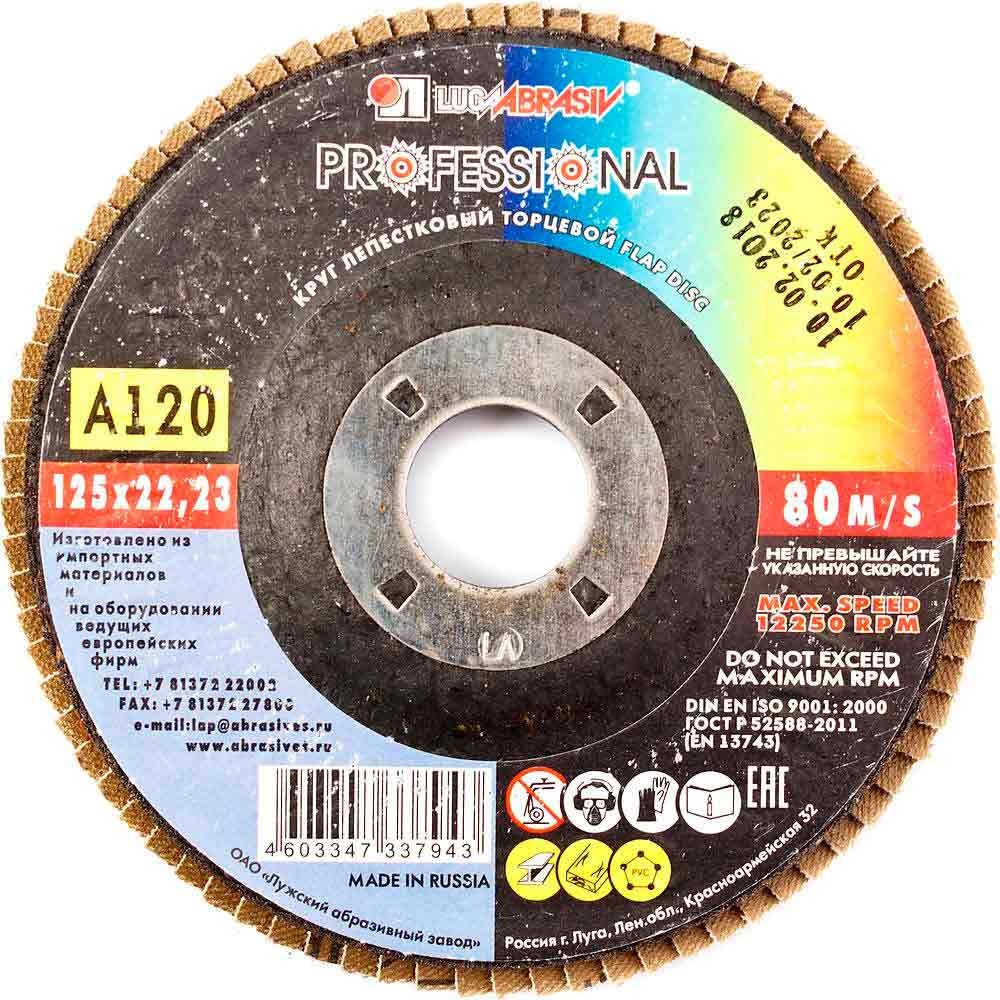Круг лепестковый торцевой Луга 125х22.2мм Р120 (4345)