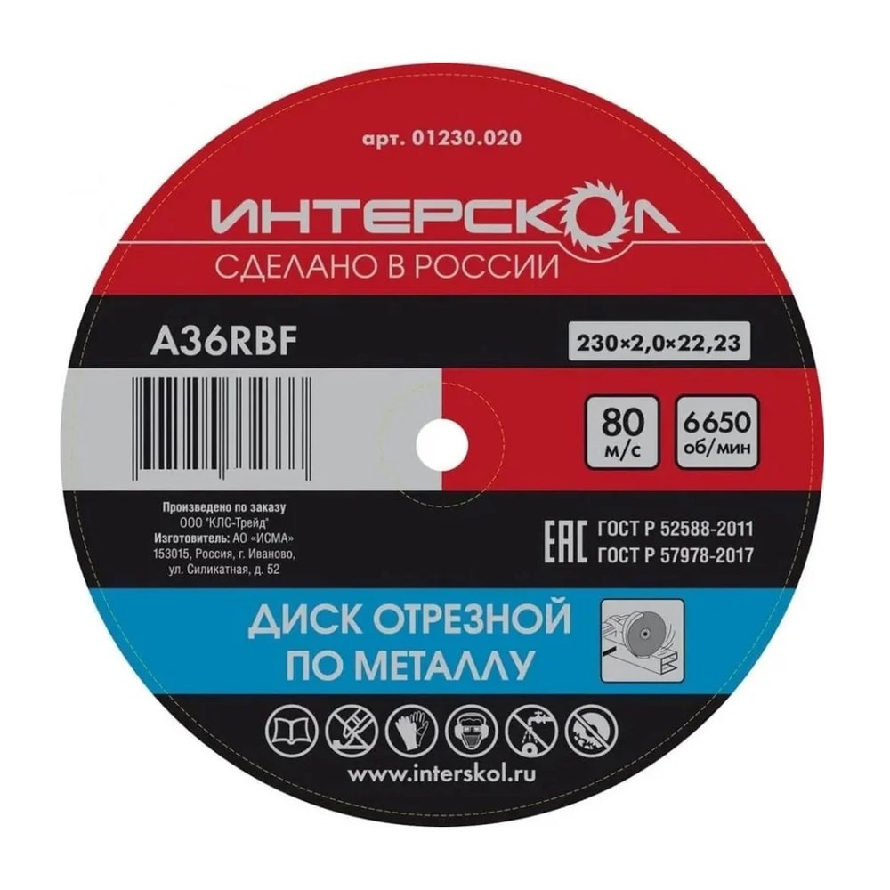 Круг отрезной по металлу Интерскол 230х2х22.2мм