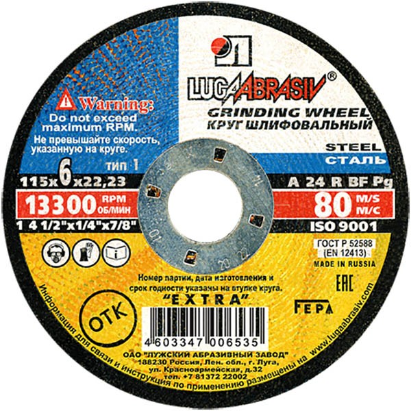 Круг шлифовальный по металлу Луга 115x6x22.2мм