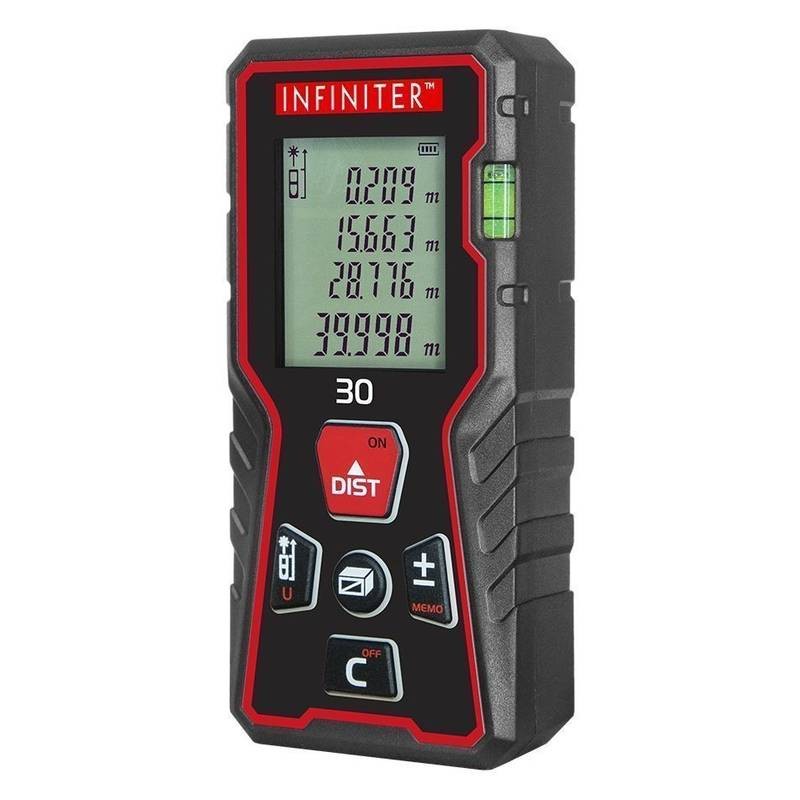 <div class="catalog-product-attributes__white-gradient"></div> <p class="product-page__description-paragraph">Лазерный дальномер INFINITER 30 это современный высокоточный измерительный инструмент, который по достоинству оценят профессионалы и домашние умельцы. Прибор оснащен широким набором функций, удобен в эксплуатации, имеет надежно защищенный корпус. С его помощью вы сможете рассчитать площадь и объем помещений, земельных участков и других объектов. Для проведения непрерывных измерений пригодится функция треккинг. Режим «косвенного» измерения по теореме Пифагора позволит произвести замеры в труднодоступных местах. INFINITER 30 отличается простым и понятным интерфейсом. Управление осуществляется пятью крупными кнопками, каждая из которых отвечает за соответствующую функцию. Благодаря эргономичному дизайну корпуса INFINITER 30 удобно лежит в руке. </p> <br> <ul class="catalog-product__features-list ul-list"> <li class="catalog-product__features-item">Широкий набор функций - автоматический расчет площад |
