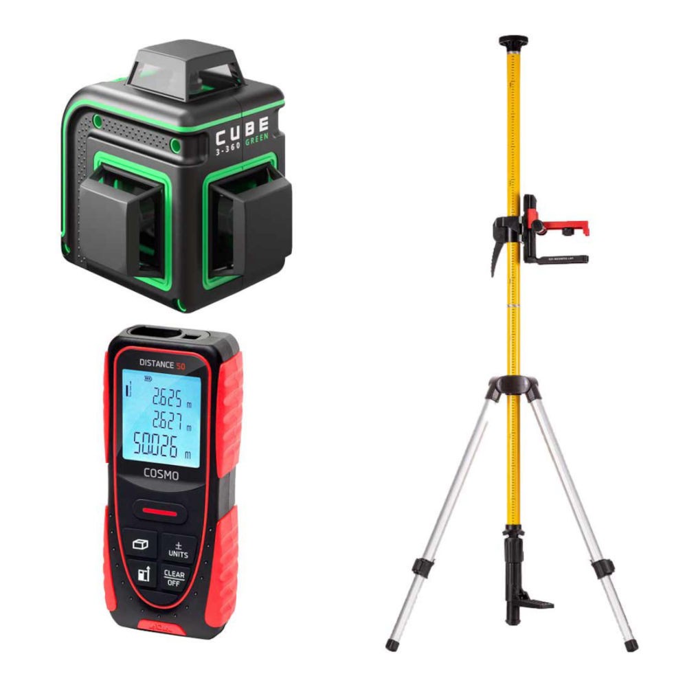 Лазерный уровень ADA CUBE 3-360 GREEN Basic Edition + Лазерный дальномер ADA Cosmo 50 + Штатив-штанга ADA SILVER PLUS