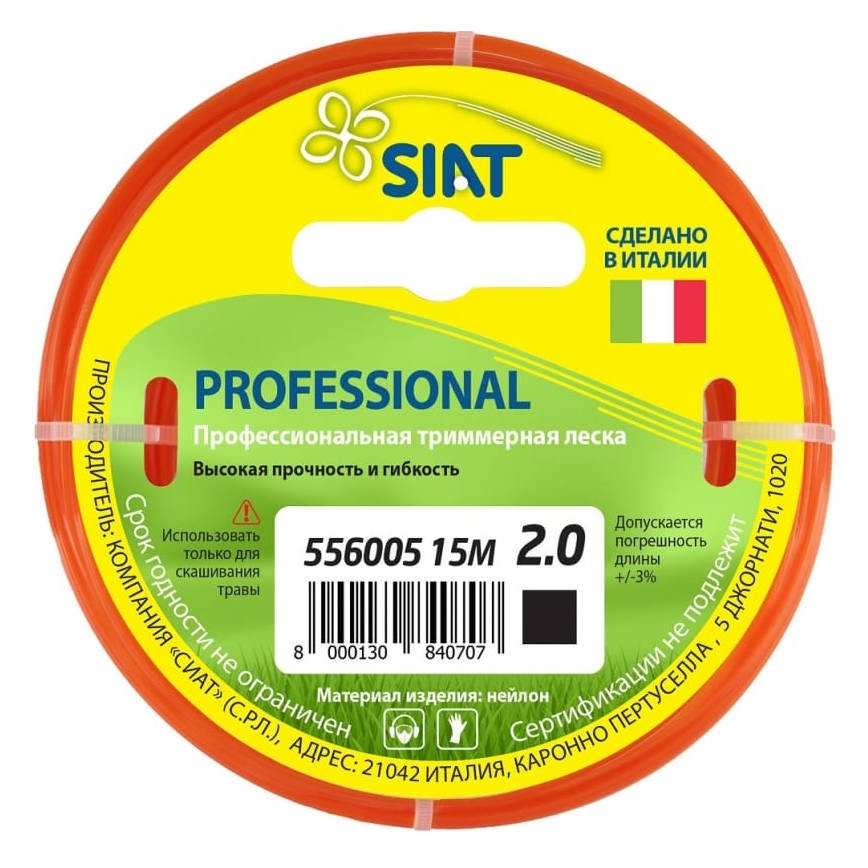 Леска для триммера SIAT 2мм квадратная 15м (556005)