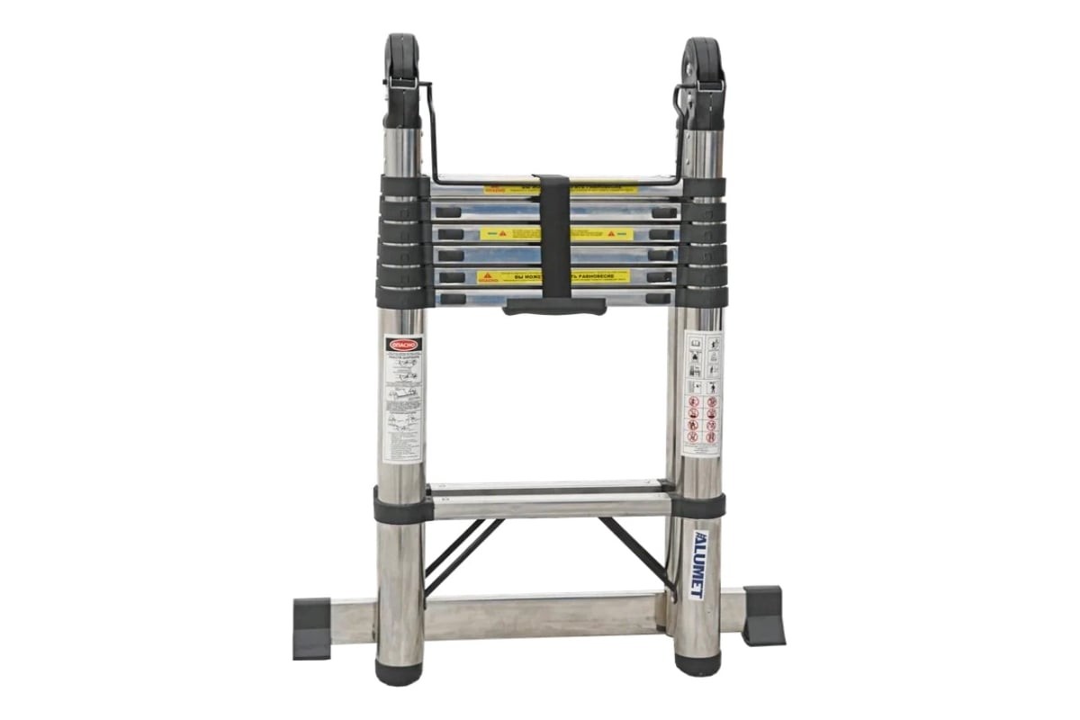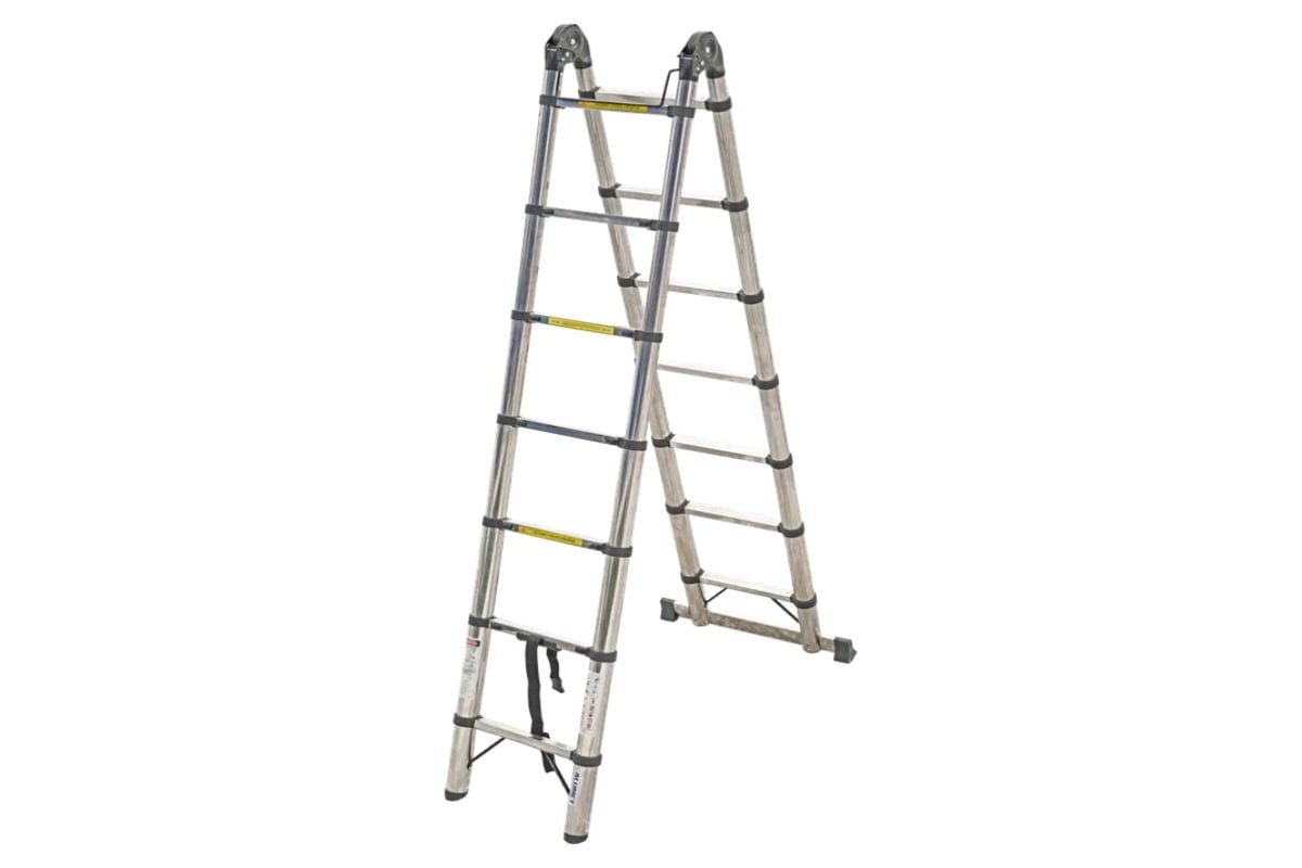 Лестница Алюмет 2,2*7 стальная телескопическая двухсторонняя с шарниром