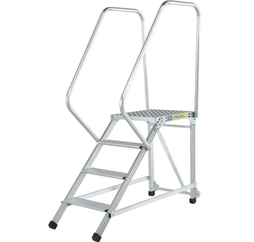 Компактные размеры и малый вес Максимальная нагрузка 150кг Широкие ступени 160мм из рифленого профиля Наличие колес Два поручня |