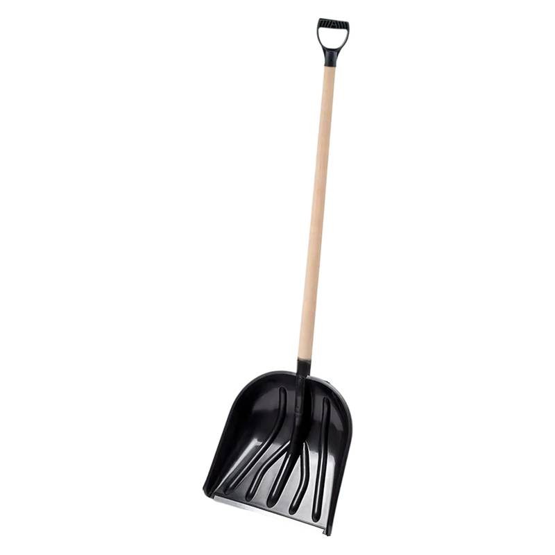 Глубокий ковш из морозостойкого композиционного пластика Большие ребра жесткости Деревянный черенок V-образная ручка |