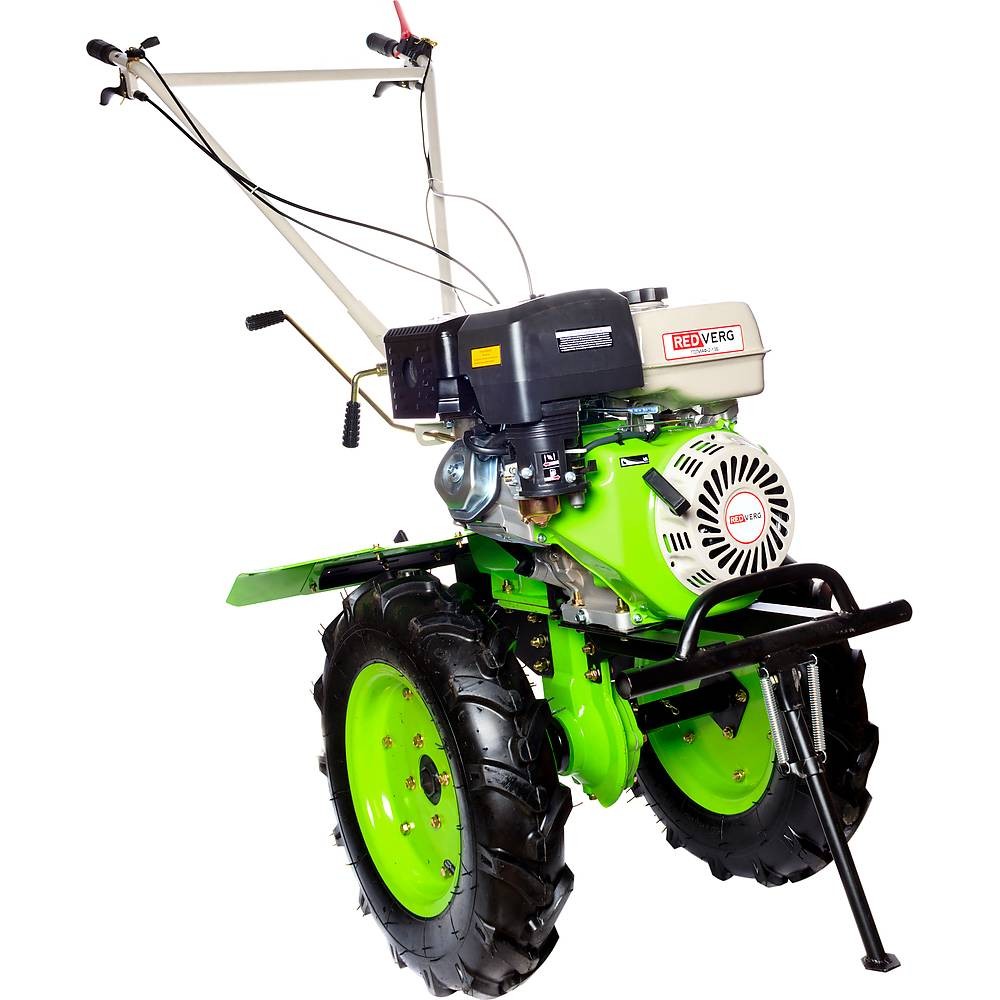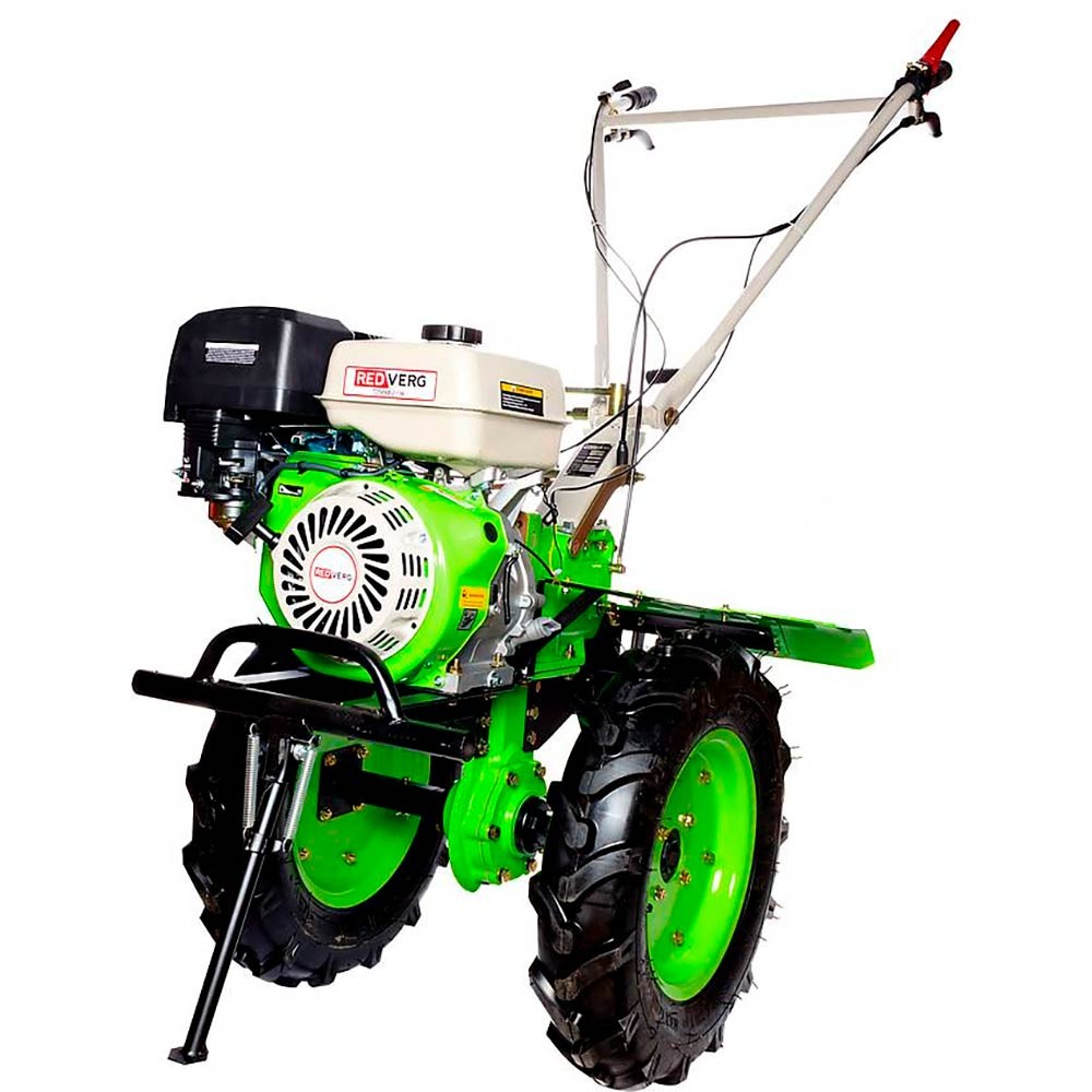 Мощный бензиновый двигатель Низкий расход топлива Большие пневматические колёса Увеличенная колёсная база Шестерёнчатый редуктор в корпусе из чугуна Вал отбора мощности Усиленная рулевая колонка Большой топливный бак Дополнительная складная опорная ножка |