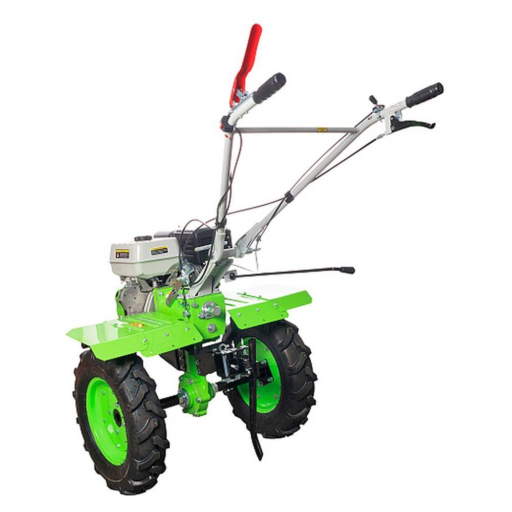 Мощный бензиновый двигатель Большие пневматические колёса Увеличенная колёсная база Вал отбора мощности Шестерёнчатый редуктор в чугунном корпусе Усиленная рулевая колонка Большой топливный бак Дисковое сцепление Дополнительная складная опорная ножка |