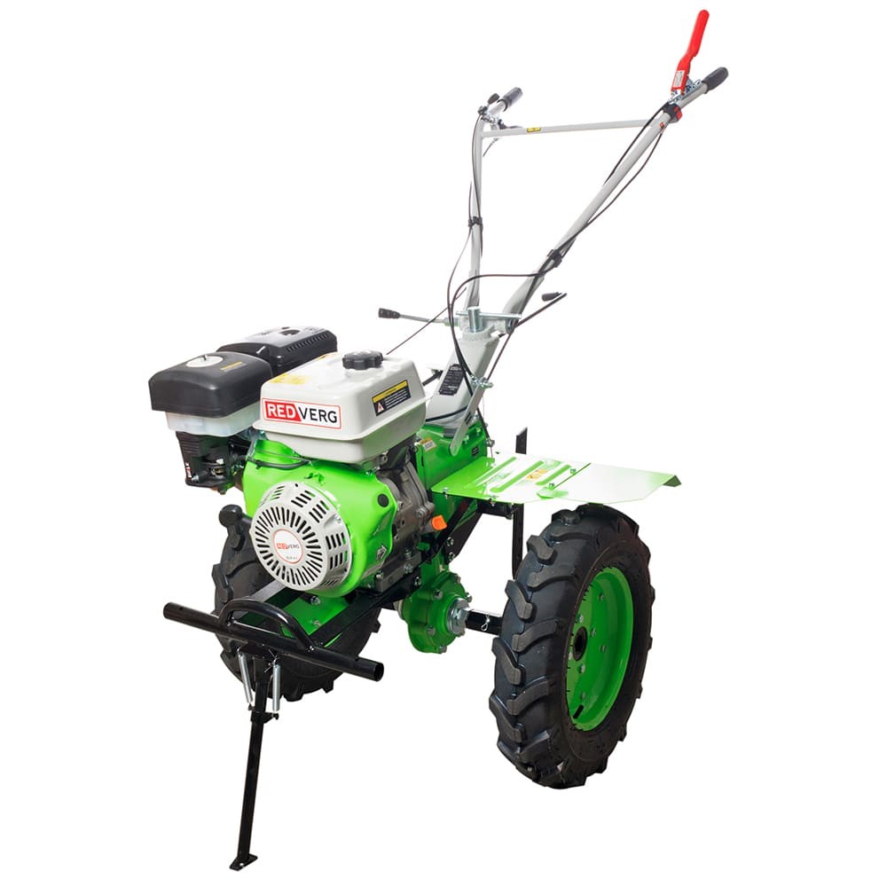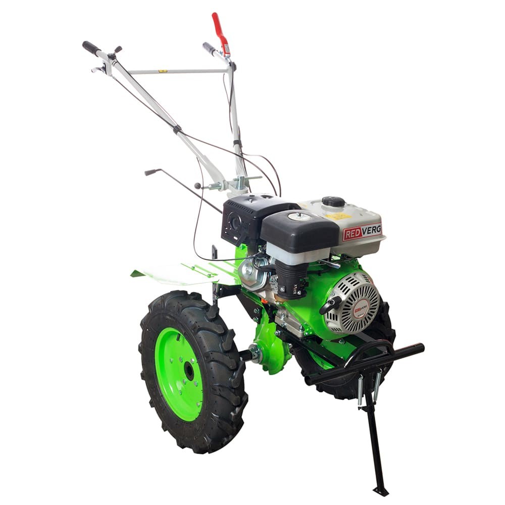 Мощный бензиновый двигатель Большие пневматические колёса Увеличенная колёсная база Вал отбора мощности Шестерёнчатый редуктор в корпусе из чугуна Дисковое сцепление Усиленная рулевая колонка Большой топливный бак Дополнительная складная опорная ножка |