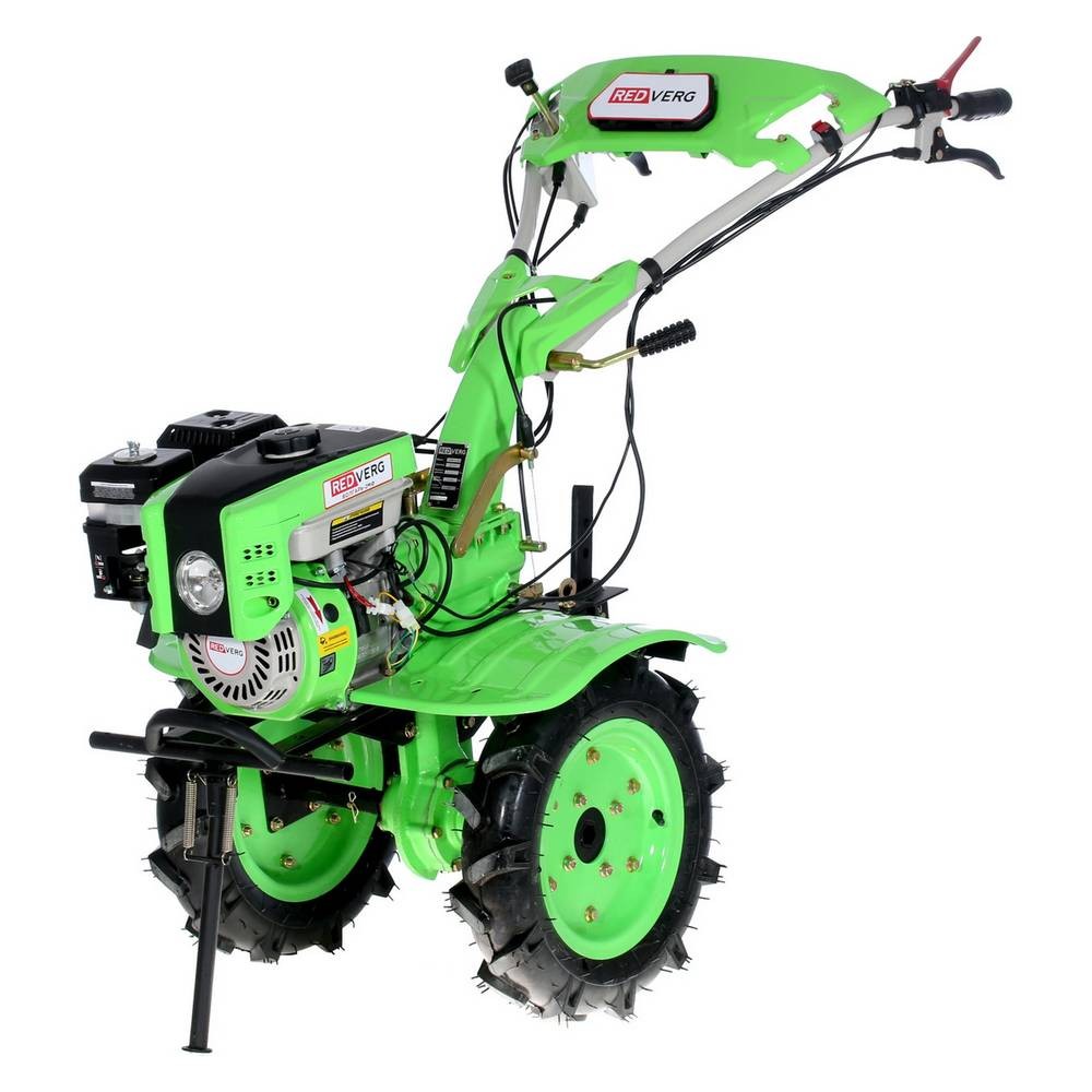 Вал отбора мощности для присоединения навесного оборудования. Защитный капот с фарой. Шестерёнчатый редуктор с корпусом из чугуна. Мощный бензиновый 4-х тактный двигатель Сошник позволяет регулировать глубину культивации |