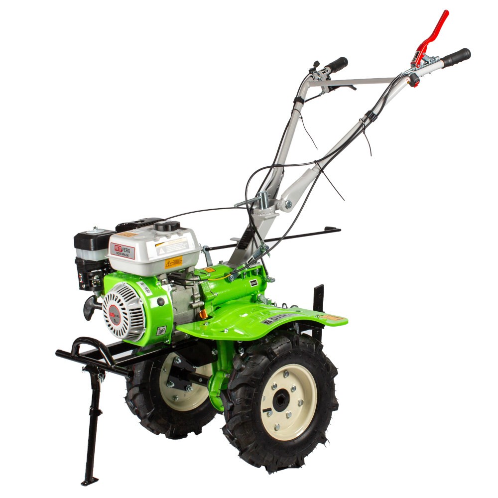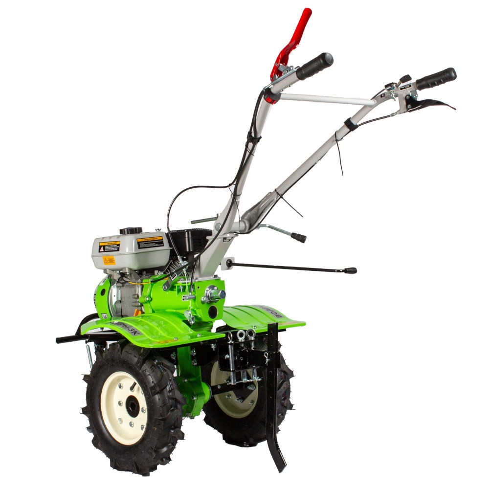 Мощный двигатель Универсальное сцепное устройство Мощные фрезы Шестерёнчатый редуктор с корпусом из чугуна Дисковое сцепление Удобное управление Наличие колес Регулируемый руль Дополнительная складная опорная ножка |
