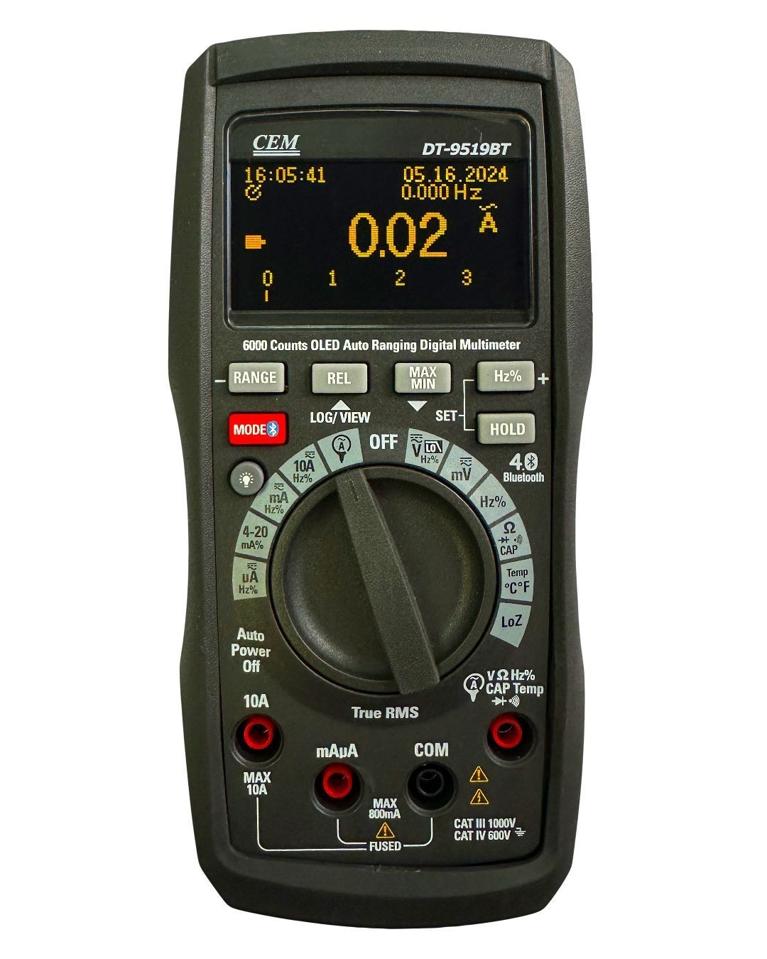 Цифровой мультиметр DT-9519BT — профессиональный тестер для промышленных задач, обладающий функцией измерения среднеквадратических значений (True RMS). Помимо базовых возможностей, измеряет температуру контактным датчиком. Подходит для диагностики силового оборудования, ремонта и обслуживания чувствительных электрических приборов — это обеспечено выделенной опцией диагностики тока низких и высоких номиналов. Автоматически определяет диапазоны.