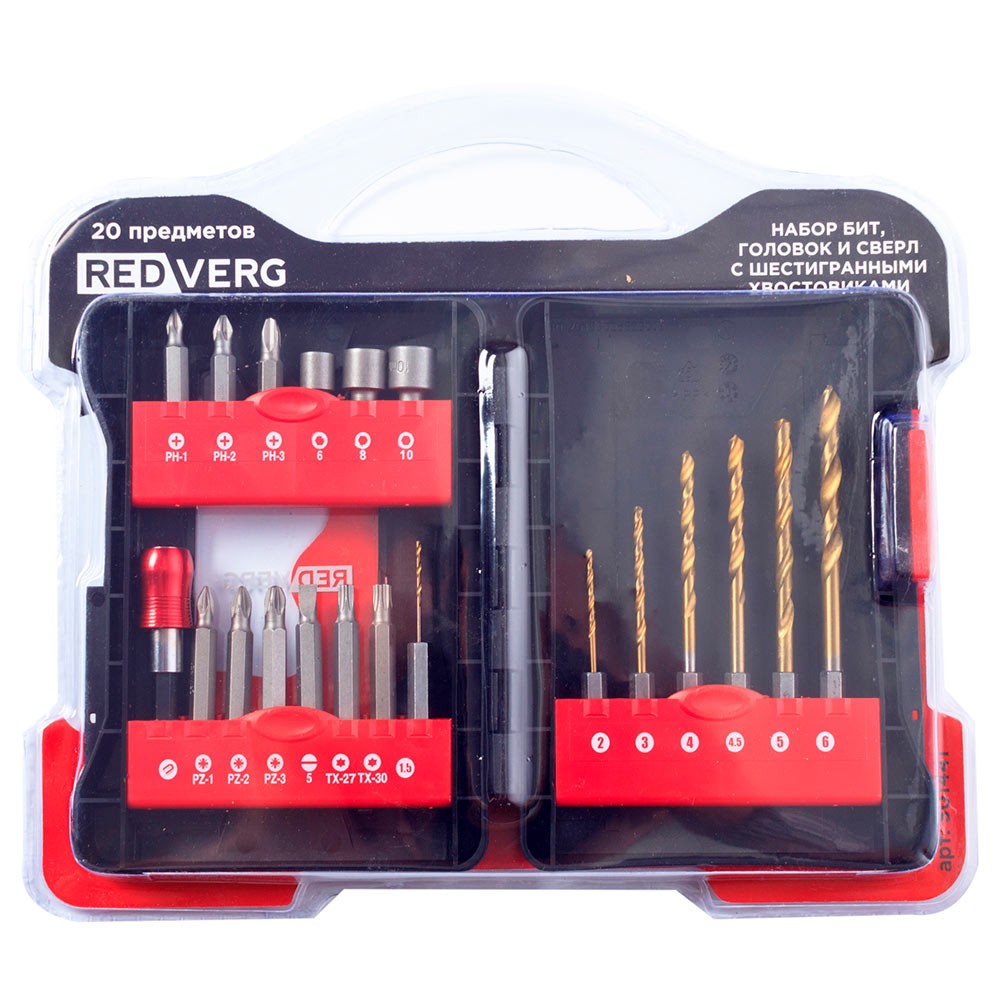 Набор бит, головок и сверл REDVERG 20 предметов (501441)