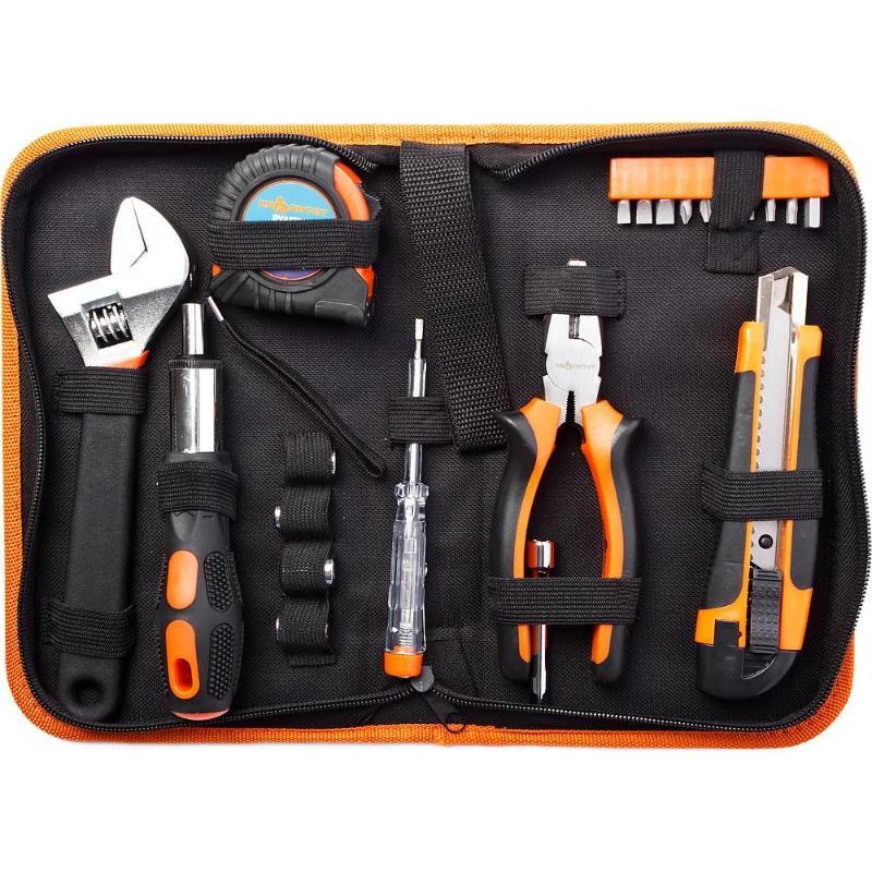 Адаптер, Биты, Держатель, Нож, Отвертка индикатор, Плоскогубцы, Рулетка, Торцевые головки, Удлинитель, Ключ разводной |