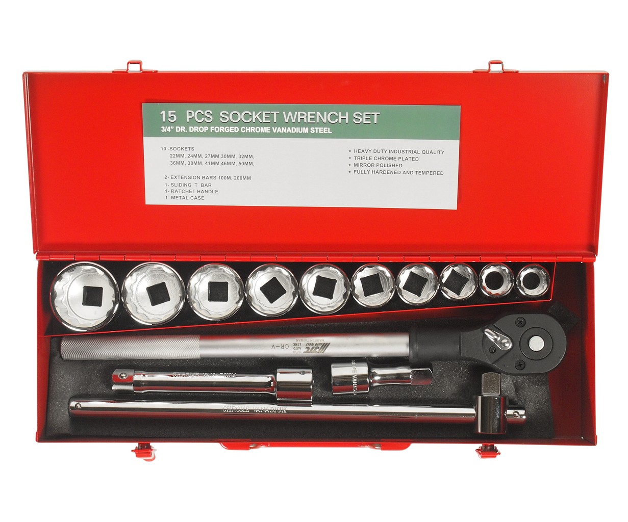 Набор головок торцевых 3/4" 12-ти гранных 22-50мм 14 предметов в кейсе JTC