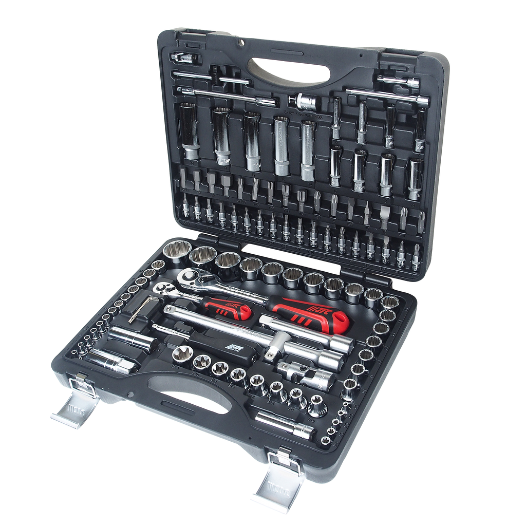 Набор головок торцевых,бит и бит-головок 1/4",1/2" 12-гранных 110 предметов в кейсе JTC